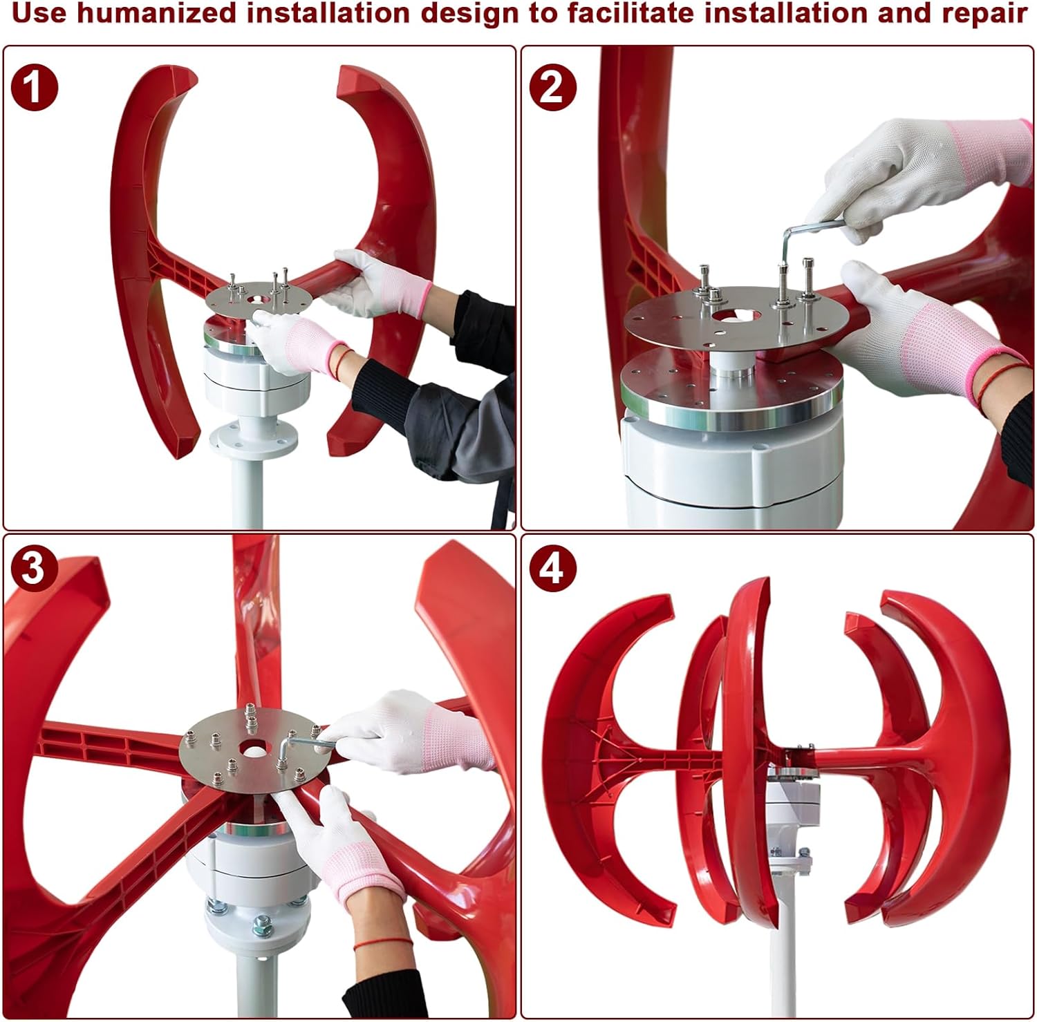 Premium Material: The wind wheel blades are made of high-quality nylon fiber, optimized aerodynamic shape design and structural design, low starting wind speed, beautiful and durable, and mass production colors can be made according to customer requirements.
