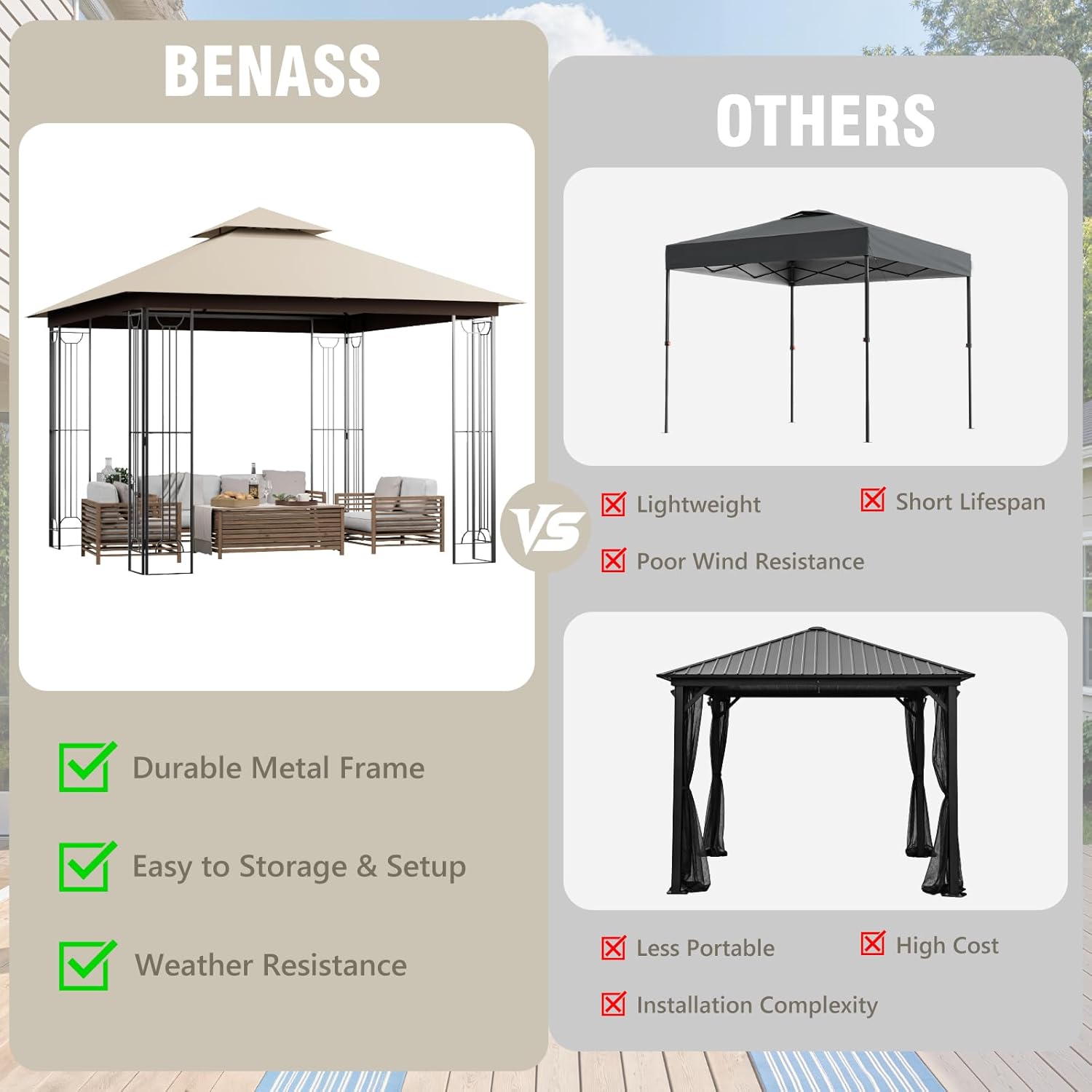 【WIDE APPLICATIONS】: The 10 ft x 10 ft backyard gazebo provides a large shaded area, ideal for your backyard, garden, pool, or lawn. It’s perfect for relaxing and enjoying outdoor activities such as weddings, camping, picnics, and parties.