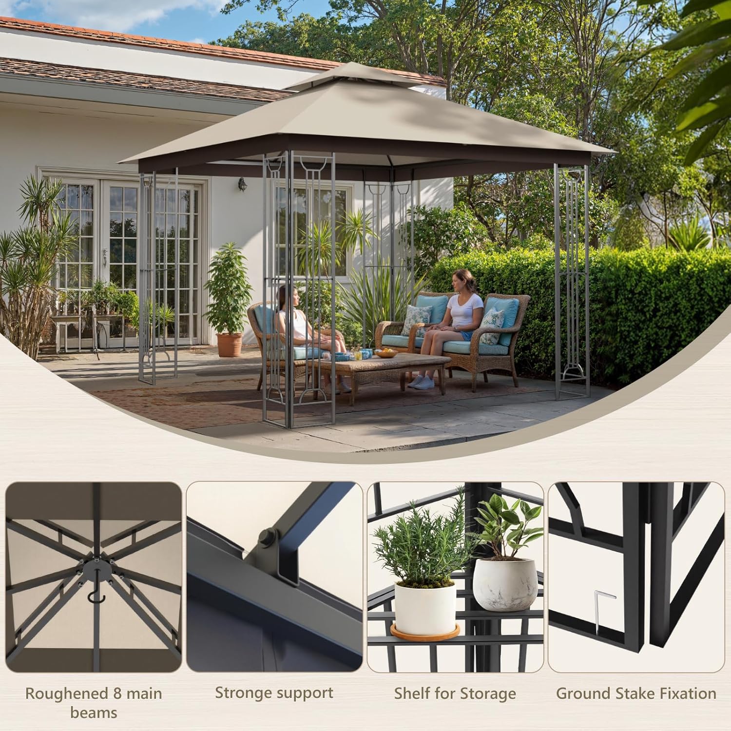 10×10 FT Outdoor Patio Gazebo, Heavy Duty Gazebos, Soft Top Gazebo with Metal Frame, Double Roof Canopy, Permanent Pavilion for Decks & Backyards