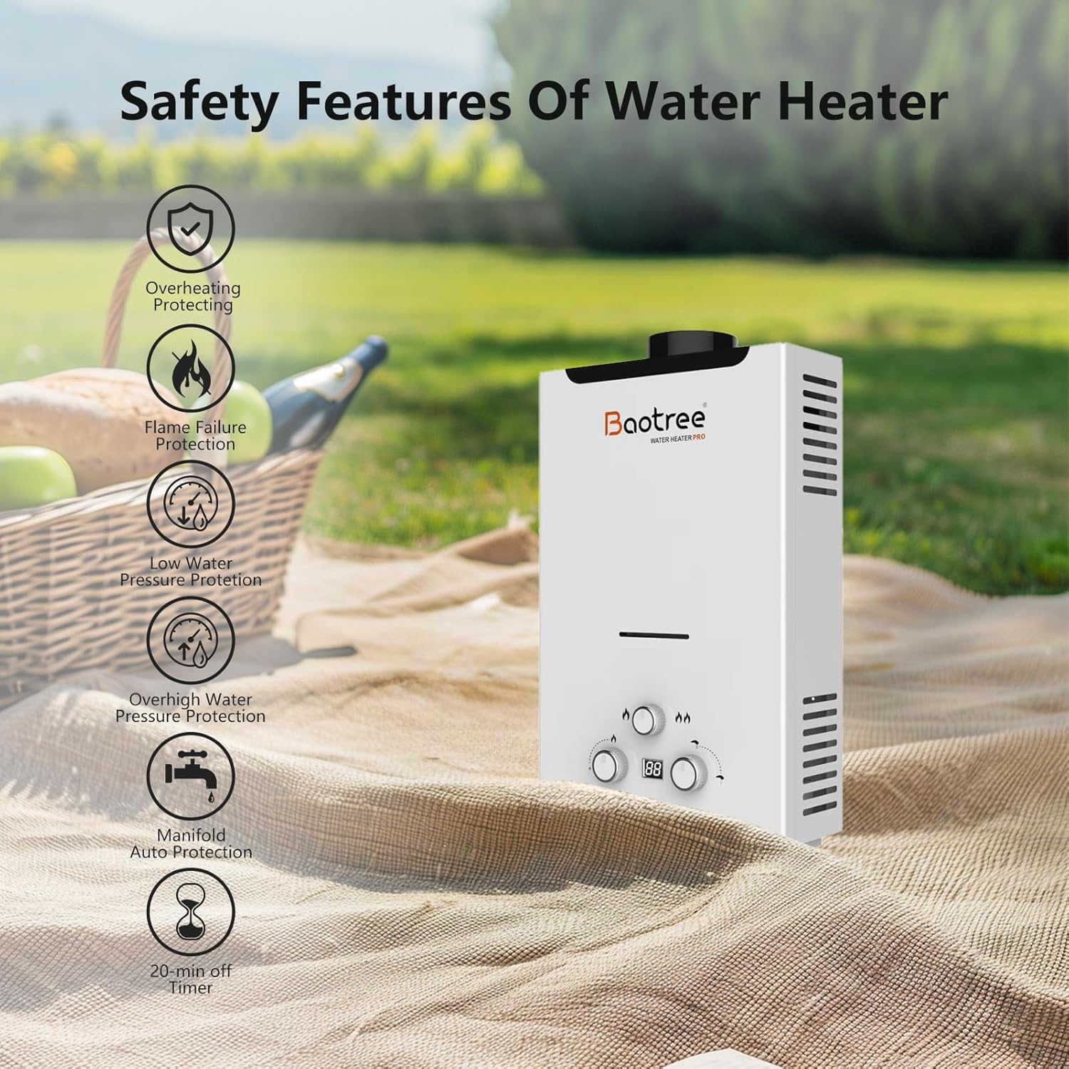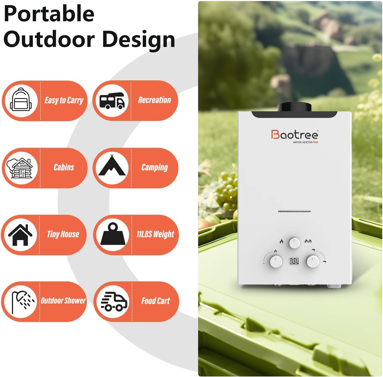 Widely Applicable:Our water heater is perfect for outdoor activities like camping, hiking, fishing, and beaching and provides safe and comfortable hot water all year round. The compact design is easy to carry and space-saving, while the tankless feature ensures an uninterrupted hot water supply. Use it to wash your pets or take a hot shower outside.