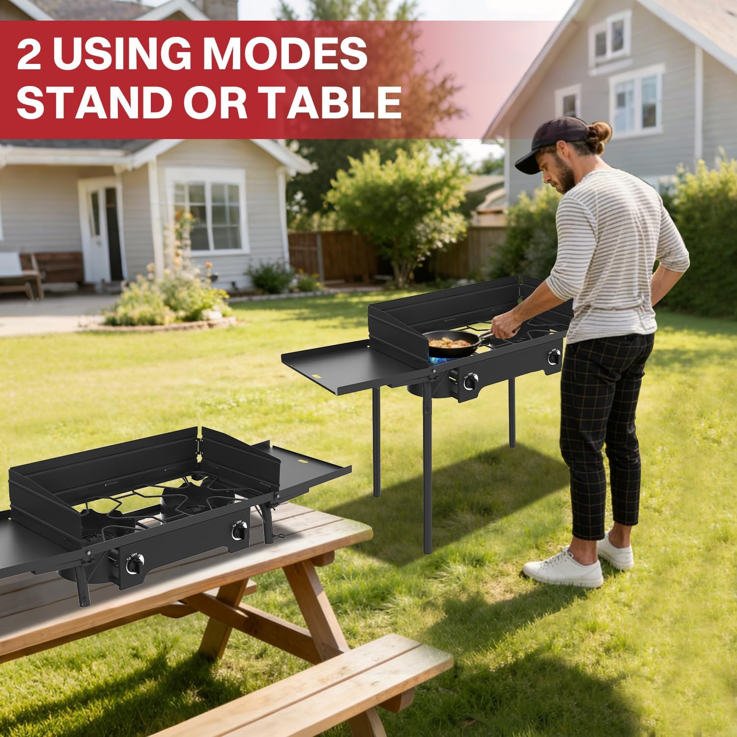 【High Power Output】With 150,000 BTUs total output (75,000 BTUs per burner), this stove delivers blazing heat for rapid, efficient cooking. Independent control knobs and a CSA-certified regulator provide precise flame control for perfect results every time, whether you’re grilling, frying, or boiling