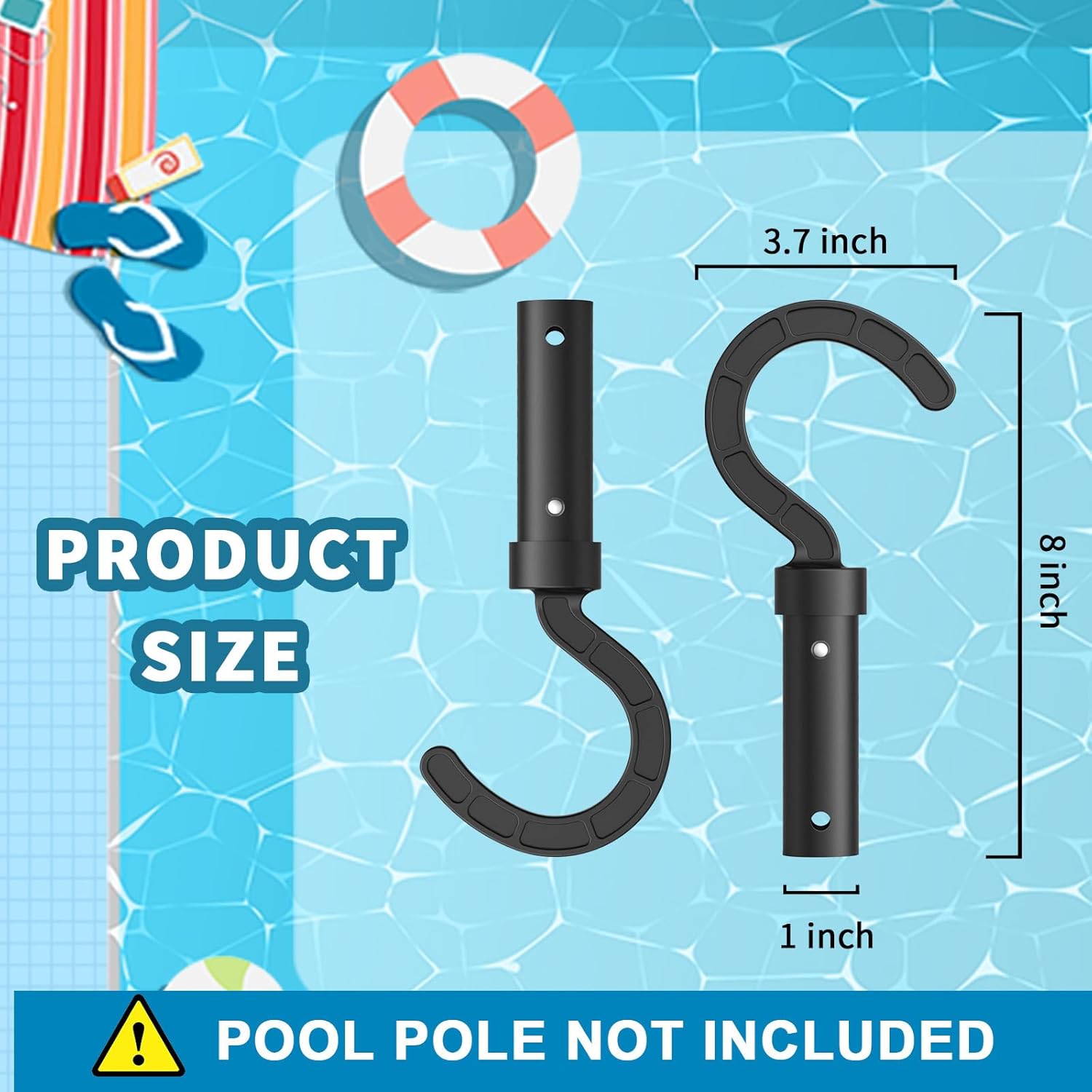 Specifications: Compact dimensions of 8.1″ in height, 3.7″ in width, and 1″ in diameter, fitting standard swimming pool poles perfectly. (Note: Pool pole not included)