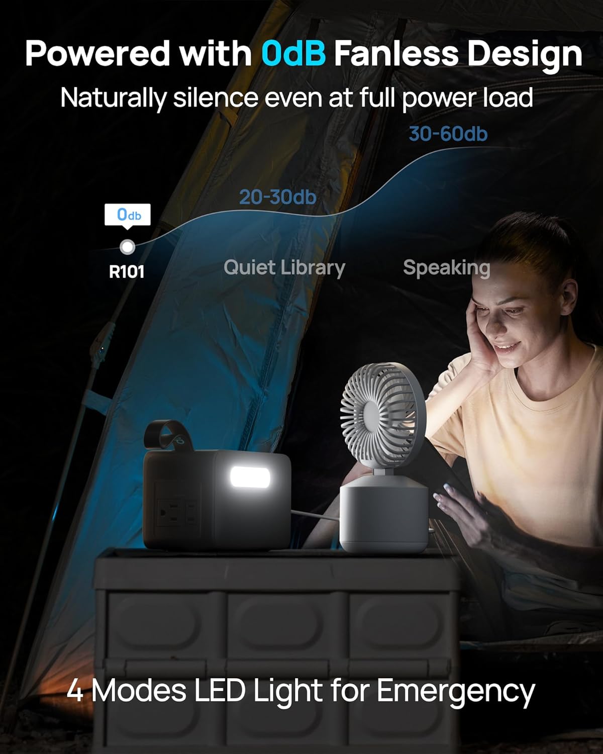 ใ€๐’๐š๐Ÿ๐ž๐ซ ๐š๐ง๐ ๐‹๐จ๐ง๐ ๐ž๐ซ ๐‹๐š๐ฌ๐ญ๐ข๐ง๐ ใ€‘: R101 Lite portable power station uses 28000mAh LiFePO4 batteries, which are safer than traditional Li-polymer power banks and extend the lifespan more than 6x. Advanced BMS 12-Layer Safety Monitoring (Voltage, Current & Temp). The LED light on the back with adjustable brightness and SOS modes to ensure lighting during emergencies, like hurricane power outages or in the wild.