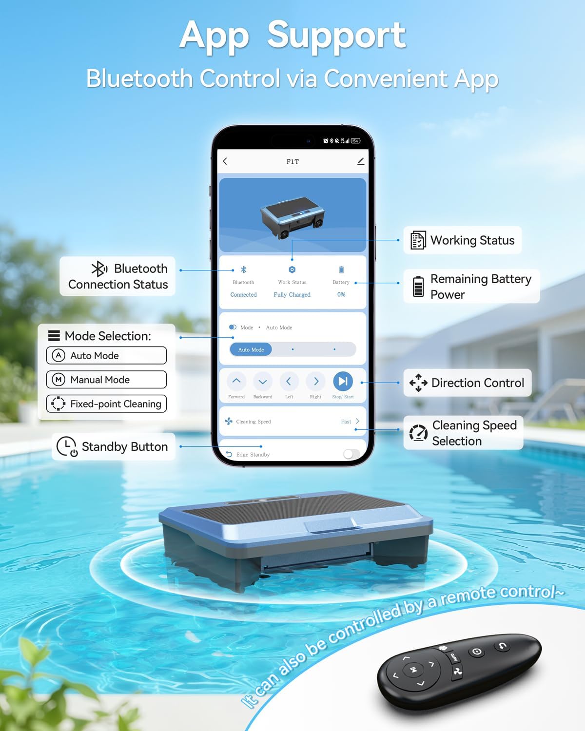 DOUBLE COMPREHENSIVE CLEANING: Our pool surface skimmer robot offers two cleaning modes: circulation mode and edge mode, delivering more thorough surface cleaning. Enjoy a clean and beautiful swimming pool that keeps you relaxed and happy