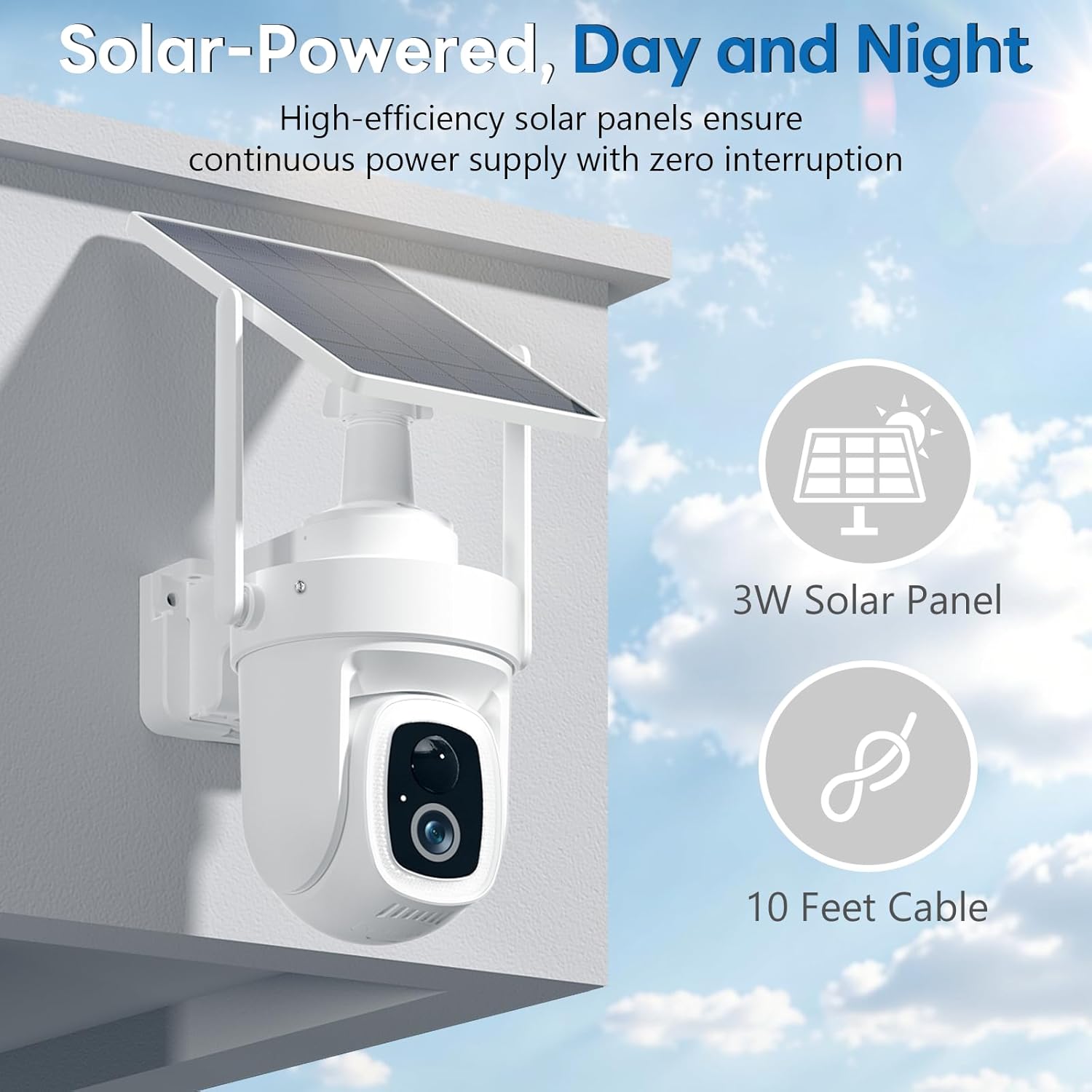 Forever Solar-Powered Operation: The included high-efficiency, detachable solar panel ensures your camera never loses power. With just three hours of daily sunlight, the battery stays charged for continuous operation—rain or shine. An updated charging circuit maximizes energy efficiency with minimal loss