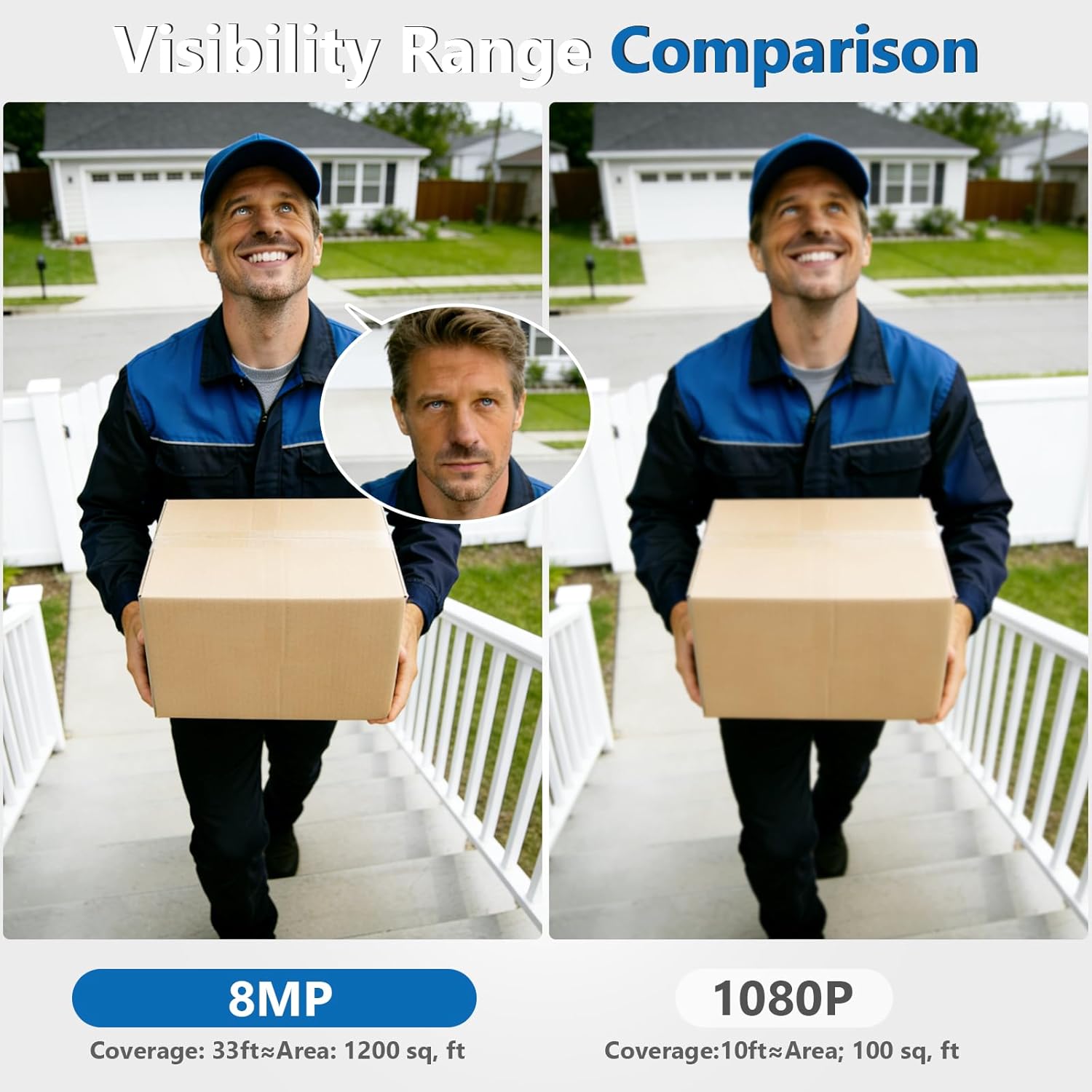 8MP Ultra HD Outdoor Security Cameras with Precision Magnifier: See every detail in stunning clarity, day or night. The tap-to-zoom magnifier allows for close-up live viewing of important events, even from a distance