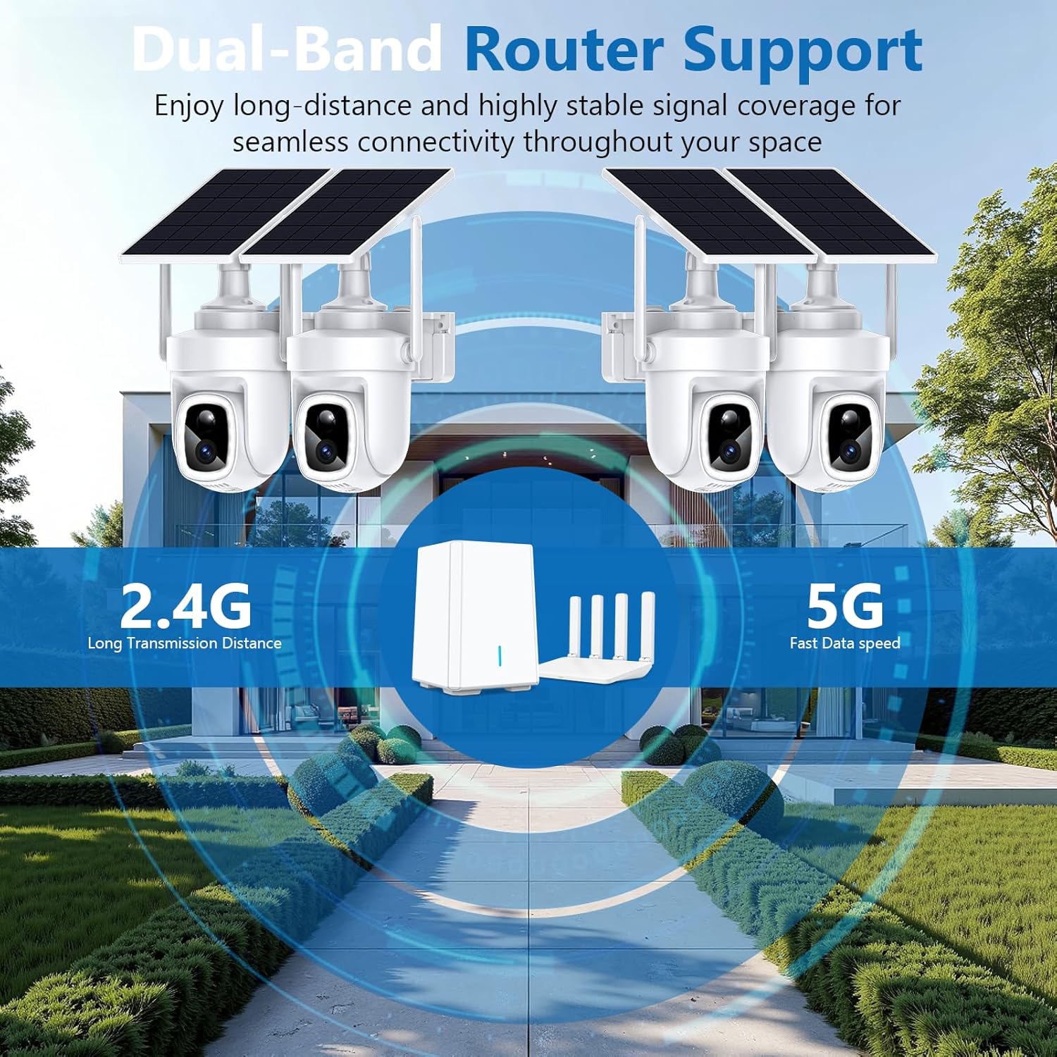 Full Panoramic View & Stable Connection: Eliminate blind spots with full pan, tilt, and rotation capabilities. Set specific zones for focused monitoring. The outside security cameras connects reliably to your dual-band Wi-Fi (2.4G/5G) via KUIKEO Local Storage Base station, which plugs directly into your router for a robust and stable connection