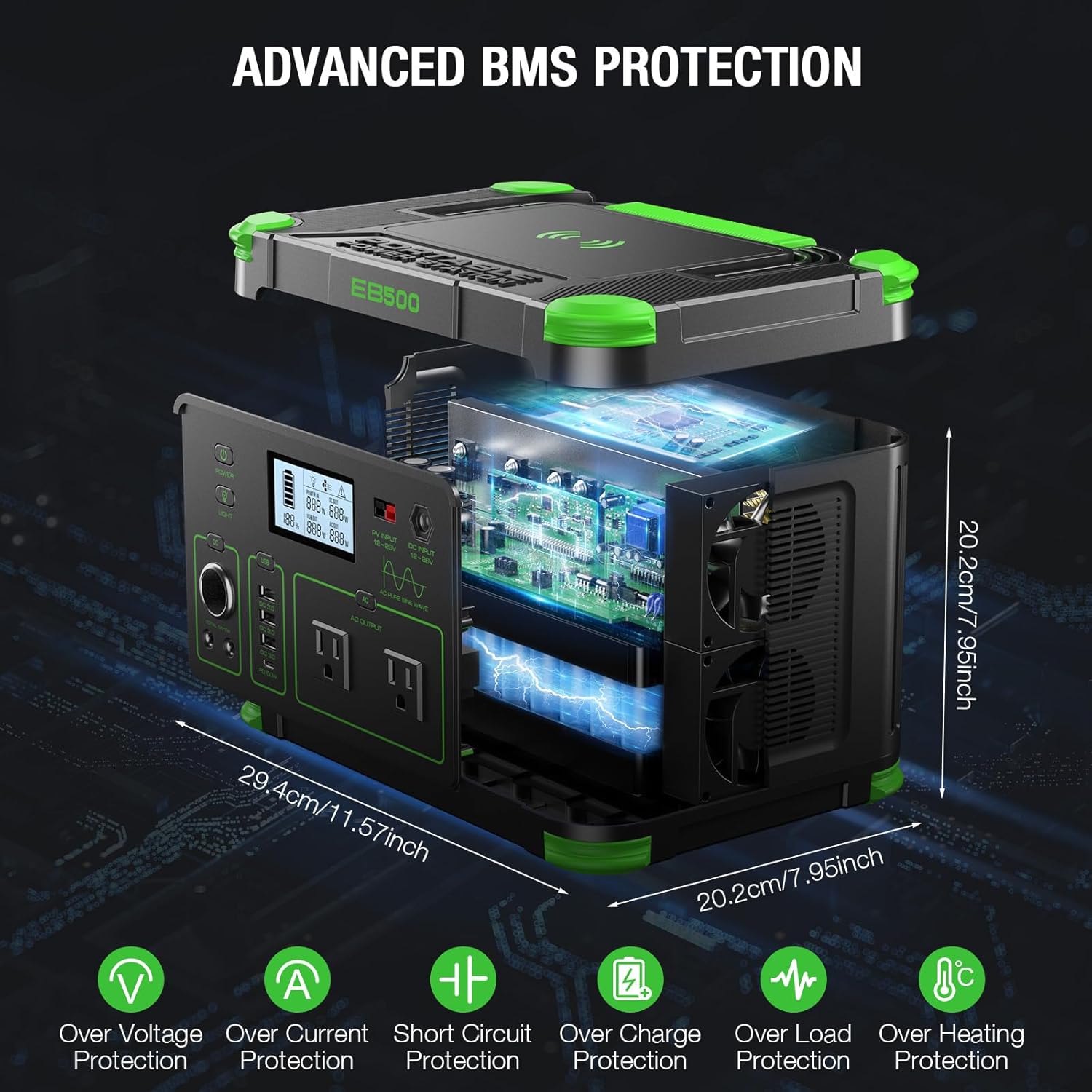 【High-Capacity Portable Power Station】Housing 519Wh (140,400mAh) in a lightweight 14.1‑lb body, this pure sine wave power station reliably runs essential devices under 500W—such as phones, laptops, CPAP machines, mini‑fridges, drones, and small appliances. Quiet, clean, and fuel‑free, it provides steady power during home blackouts or remote outdoor trips.
