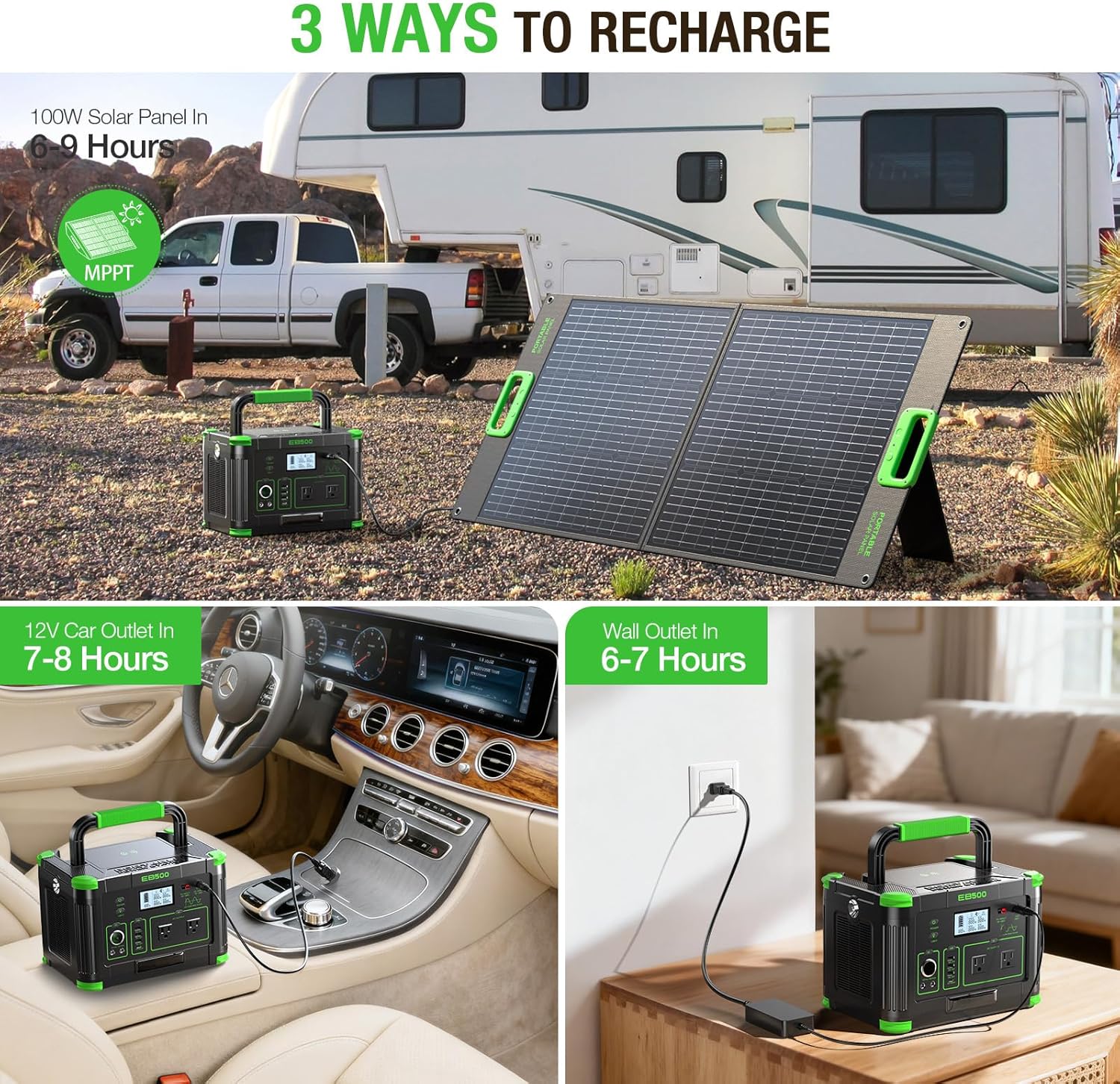 500W Portable Power Station (1000W Peak), 2x 110V AC Outlets & 60W USB-C PD, 10-Output Portable Power Bank with Wireless Charger for Camping, RV Travel, and Home Emergency Power Backup Off-Grid Living
