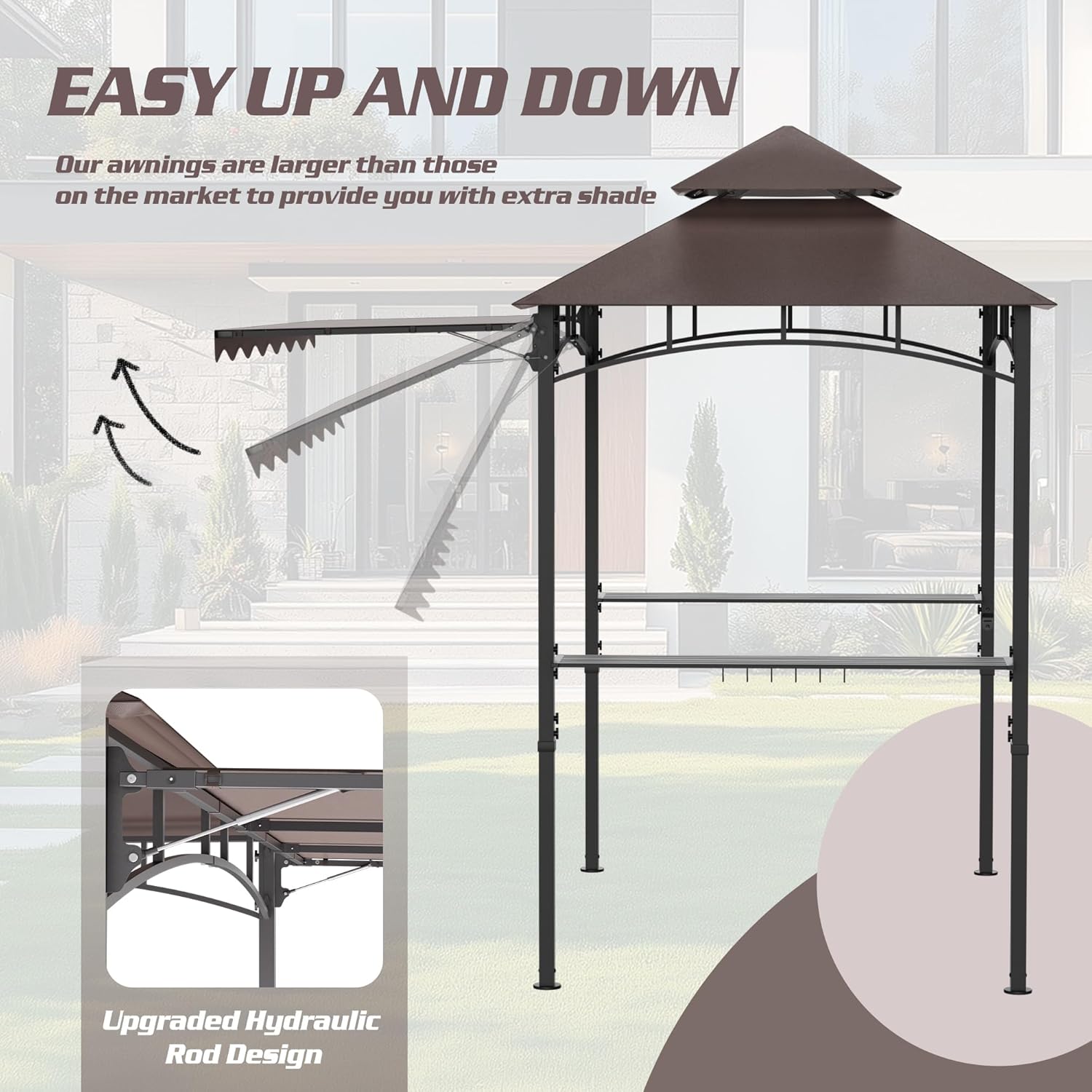8’X8′ Grill Gazebo Canopy – Heavy Duty Steel Frame, Double Tiered Grill Canopy for Outdoor Grill W/Shelves, Ceiling Hooks, Ground Stakes, Patio Canopys Tent BBQ Gazebo Backyard (Brownness)