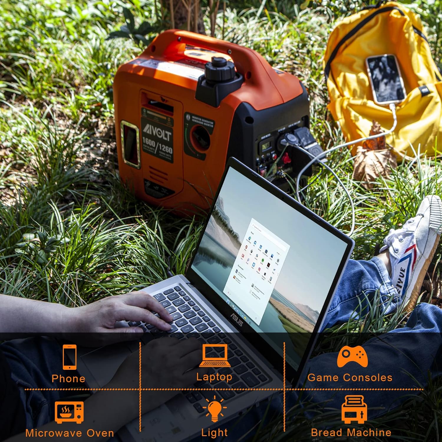 🔌 Safe for Sensitive Electronics | <3% THD Clean Power Inverter Generator - This portable inverter generator with advanced inverter tech delivers stable, clean power (THD <3%), safe for your phones, laptops, or small tools. It’s the perfect for home office backups during blackouts or generator for camping - keep your devices charged without worry