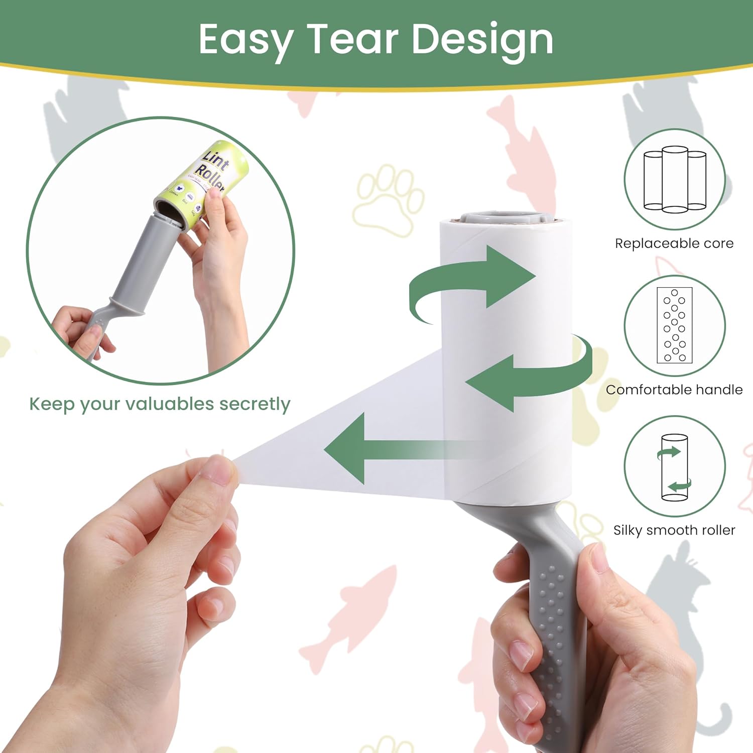 Easy to Use: There is a swivel pattern on the top cover of the reel, making it very quick to use. As a sticky lint roller, it comes with 60 sheets and the roll core is replaceable