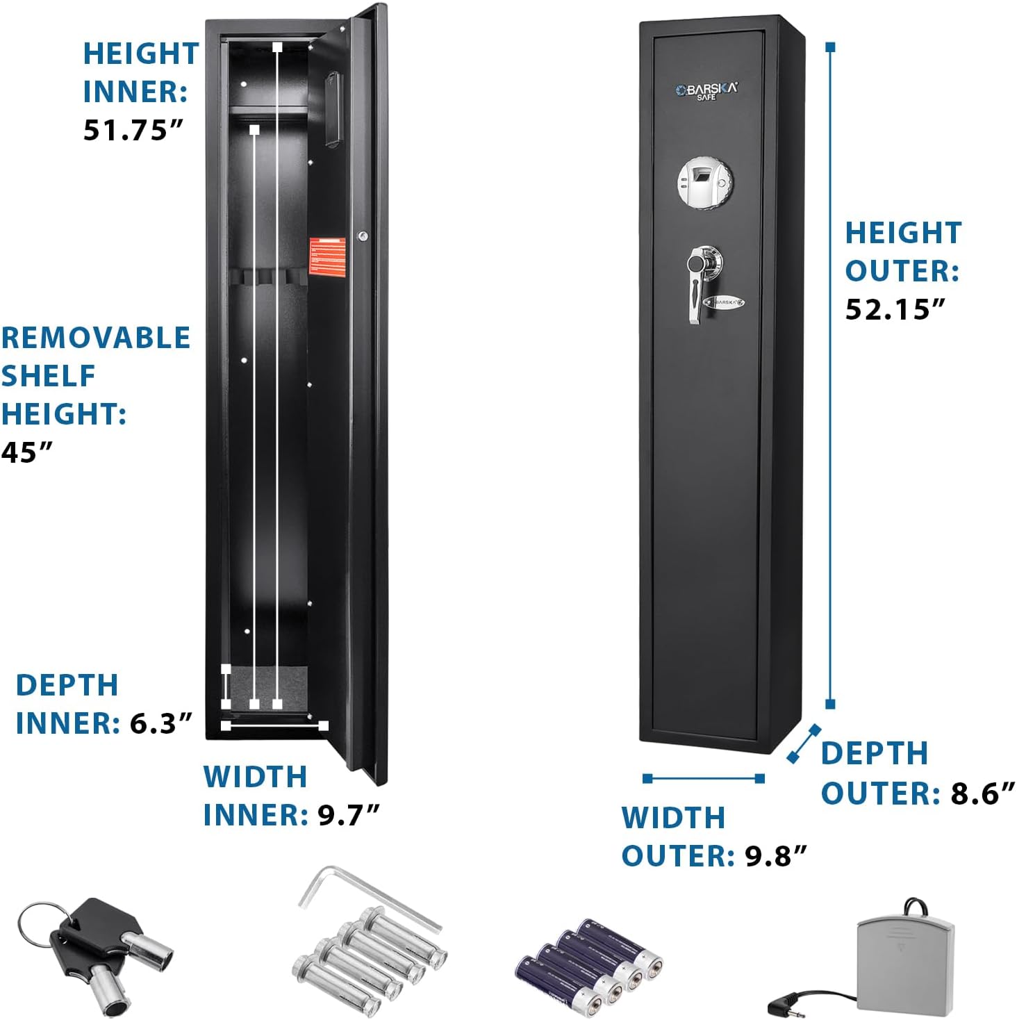 Barska Biometric Rifle Gun Safe – Quick Access Fingerprint Long Gun Safe for Home, DOJ Approved, Silent Mode, Removable Shelf, Backup Keys & Battery