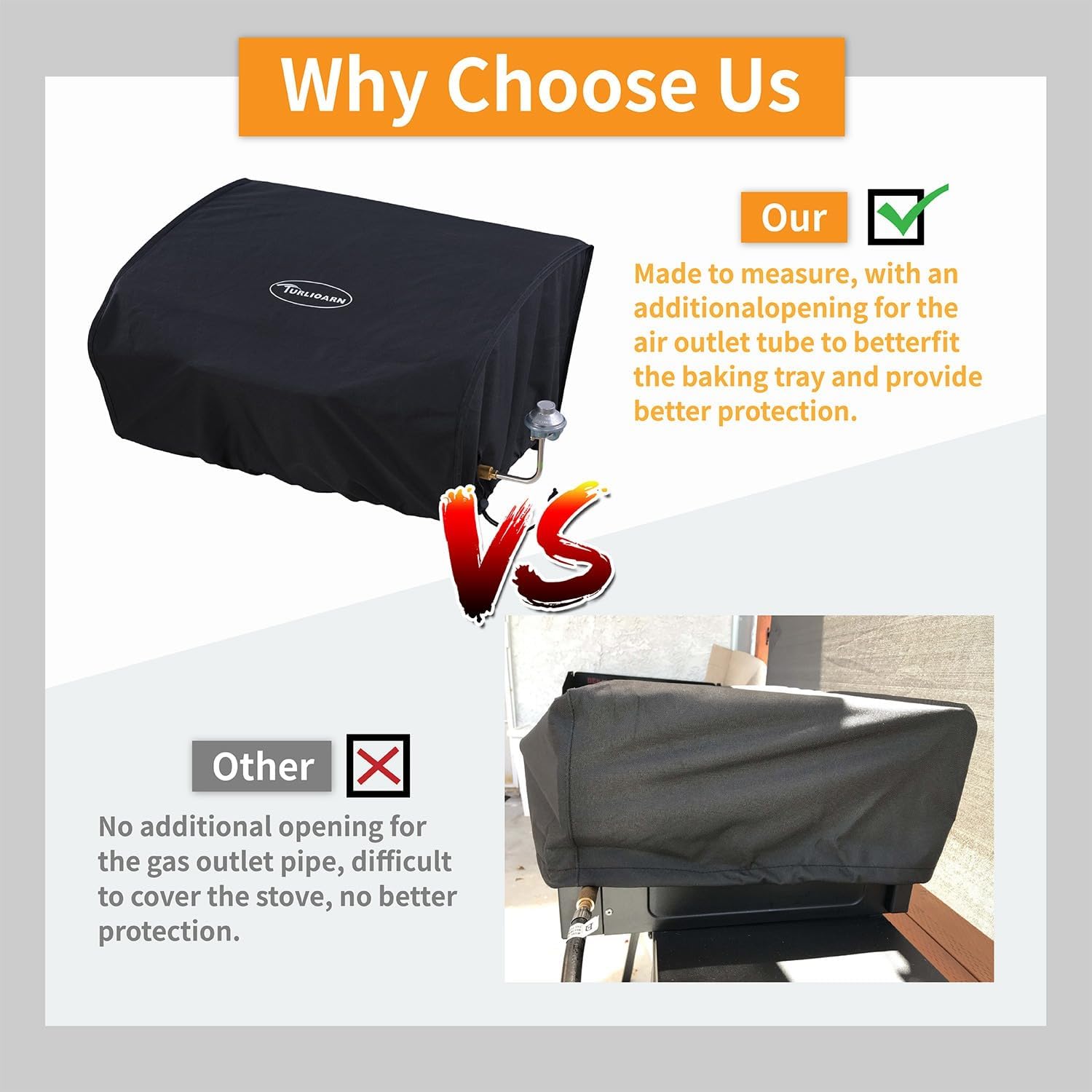 Quality, not quantity Our Grill Cover with a focus on quality, our oven covers protect your ovens clean and dry! Our material comes from 600D oxford fabric, high toughness, not easy to break, with super waterproof ability, and can defend against UV rays, with windproof design, all-weather can be harnessed!