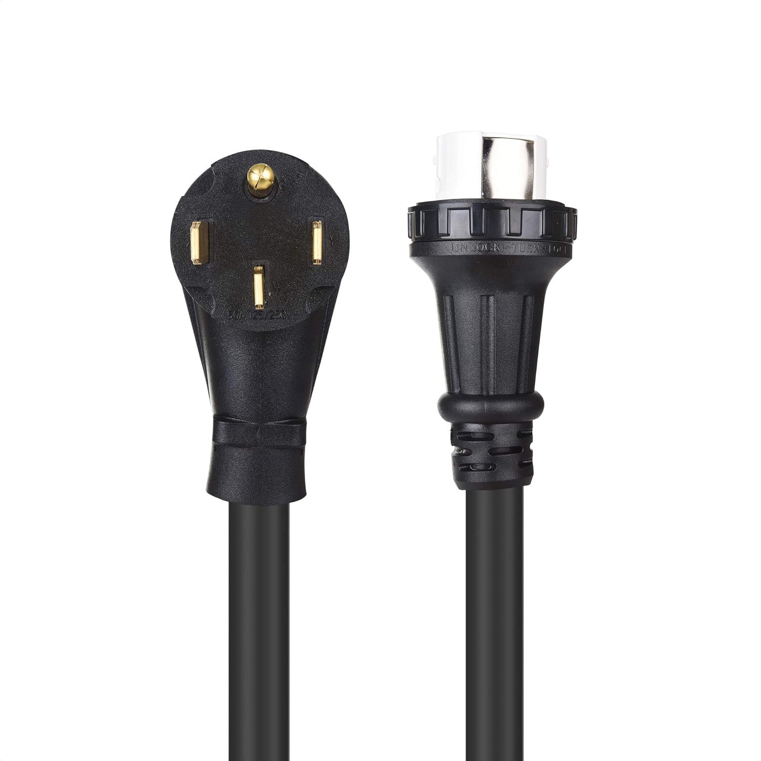 Rugged & Safe Design: This 50-amp RV connector features a heavy-duty 125/250V locking female plug, making it an essential component for powering your RV at campgrounds or generator stations. Built for reliability and secure connections in demanding outdoor conditions.