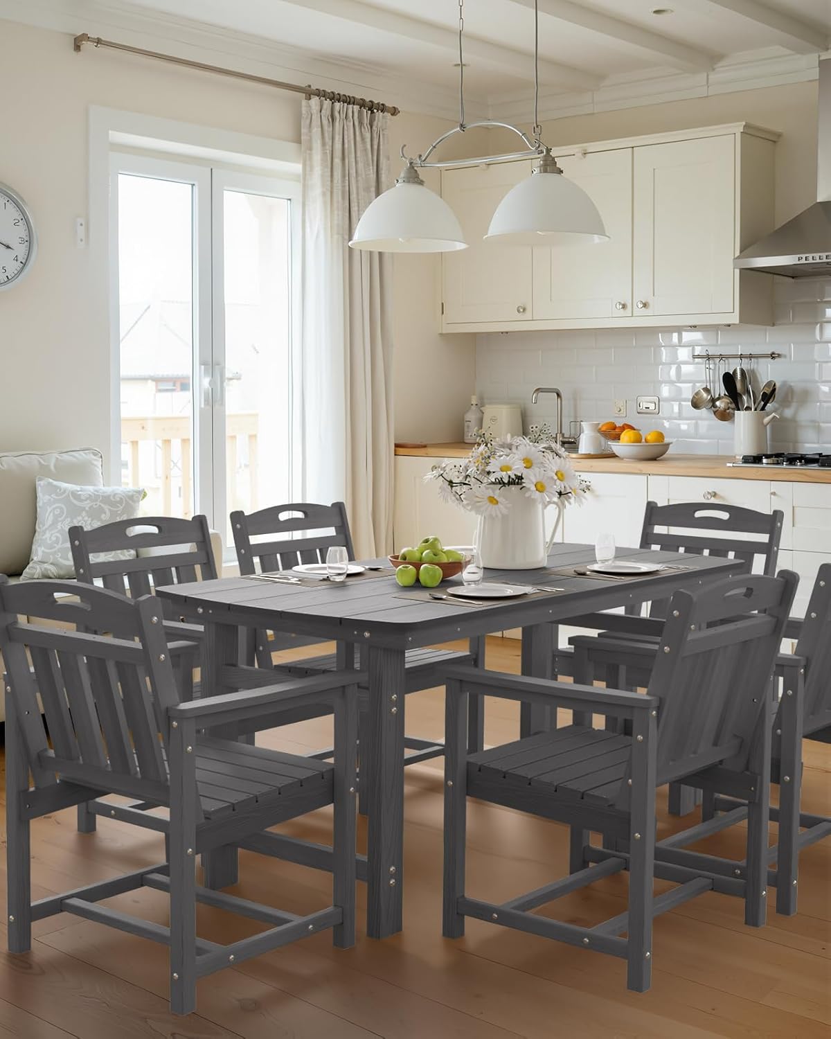 Ciokea HDPE Outdoor Dining Set, 7-Piece Patio Table and Chairs Set with Umbrella Hole, All-Weather Patio Dining Sets for 6, Durable Patio Furniture for Backyard, Garden, Lawn & Poolside, Grey