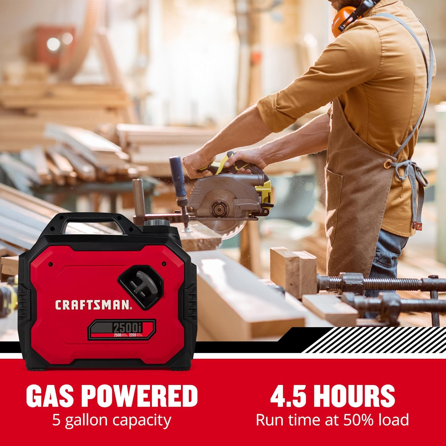 Craftsman C0010250 2,500-Watt Gas Portable Generator – Reliable Power for Outdoor Activities – Quiet Operation – Lightweight and Compact Design – Powered by Generac – 50 State/CARB Compliant
