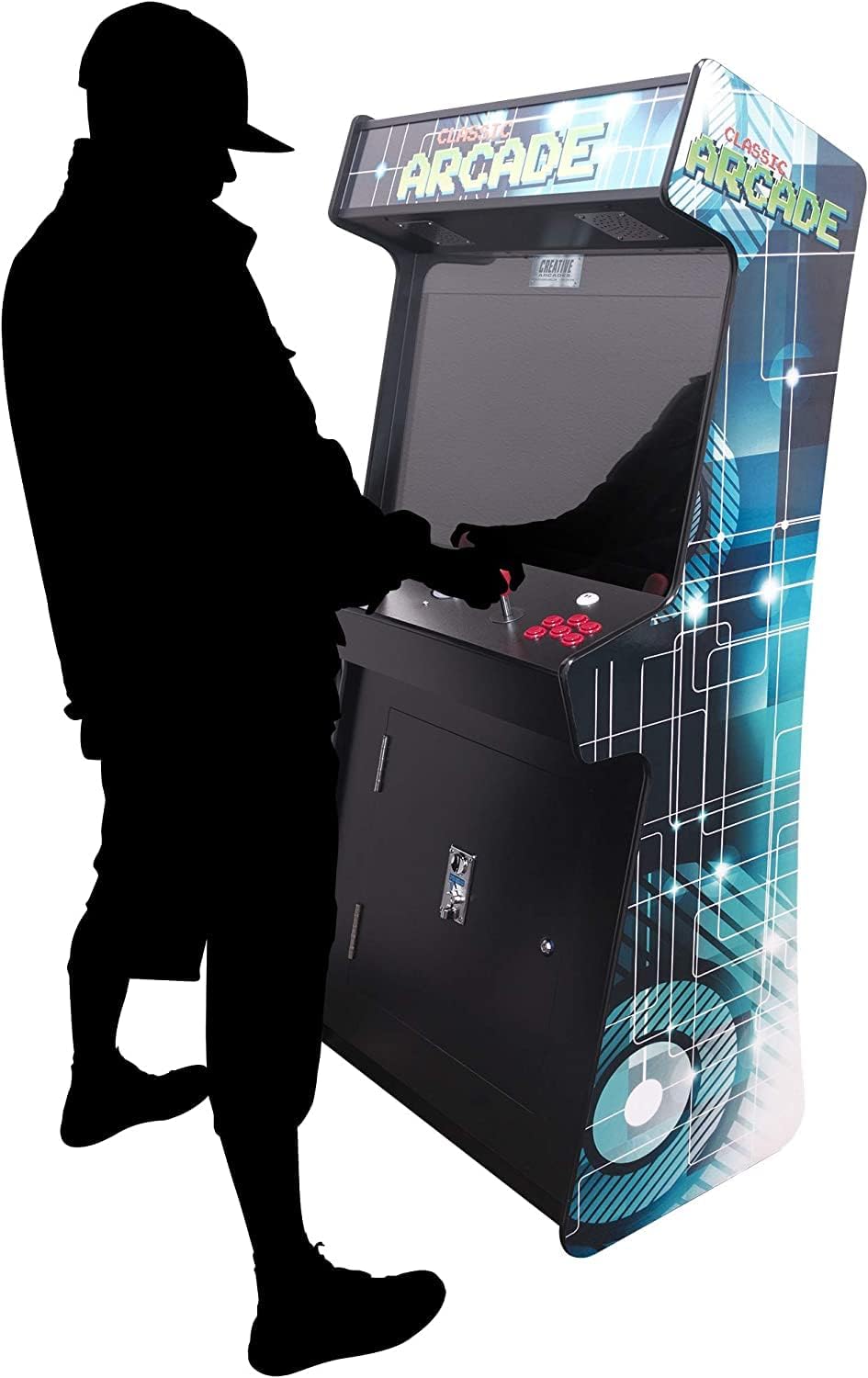 Creative Arcades Full-Size Commercial Grade Cabinet Arcade Machines | 2 Stools Included | Trackball | 5,100 Classic Games | 32″ Screen (2 Player Slim, Standard)