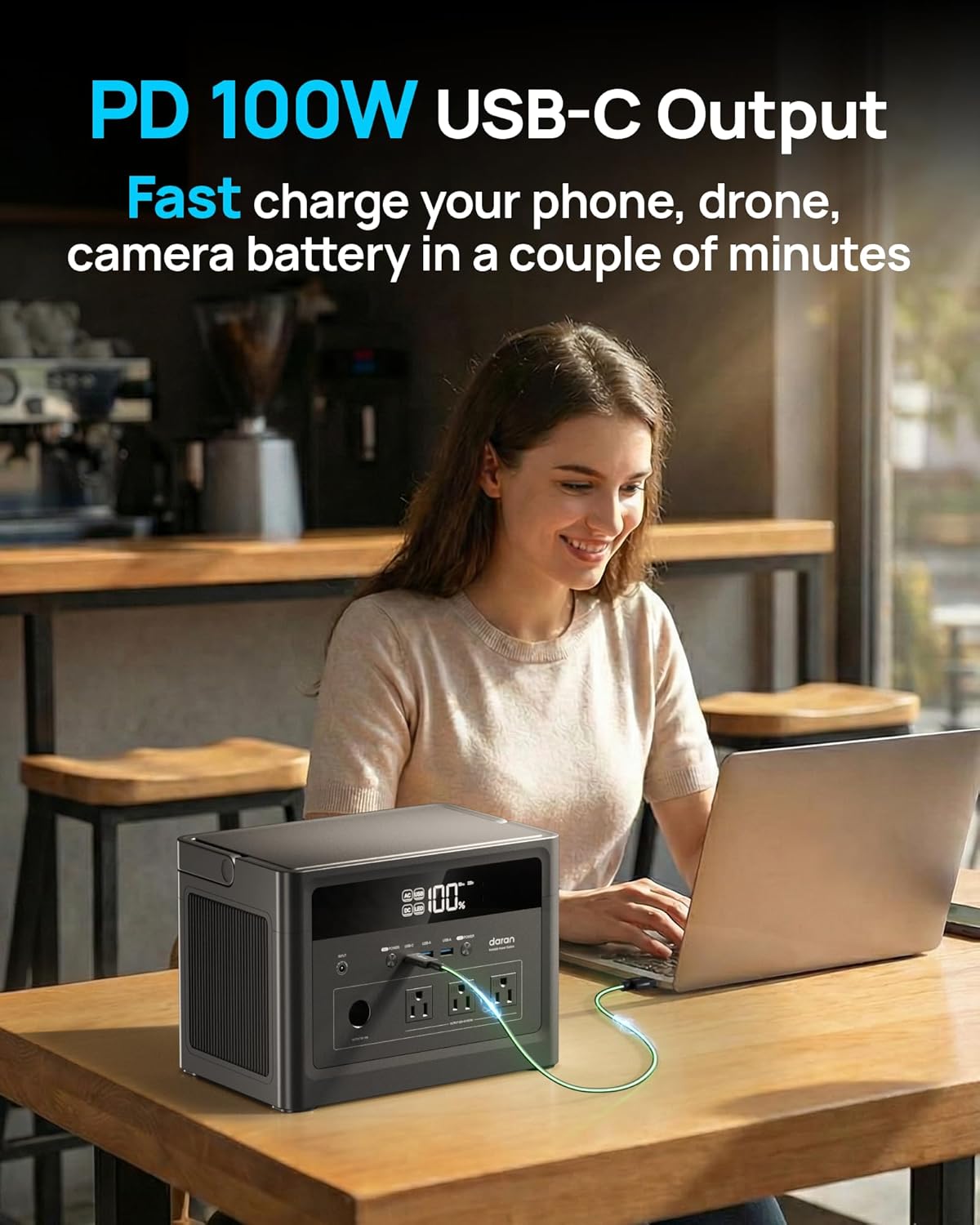 【100W USB-C PD Port + 18W USB-A Fast Charging】Power your devices faster when it matters most. The 100W USB-C PD port charges smartphones, tablets, and laptops at more than 2× the speed of standard USB-C. The 18W USB-A fast-charge ports keep your gadgets powered efficiently anytime, anywhere—great for travel, everyday carry, and emergency use.
