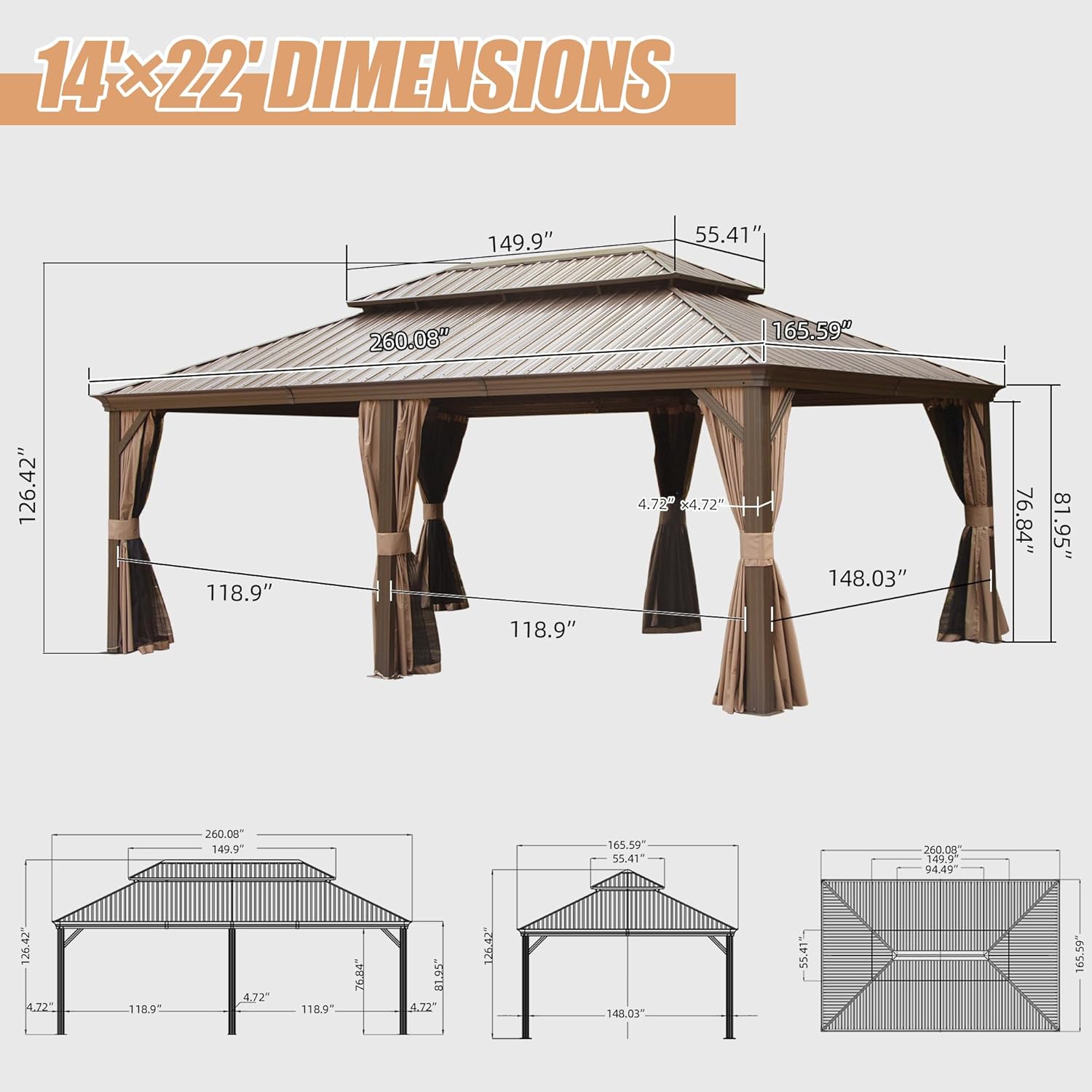 ❤️Introducing our Super Large Domi 14x22FT Gazebo- The epitome of spacious elegance for your outdoor gatherings. Enjoy ample room for entertainment while basking in the comfort of shade and style.
