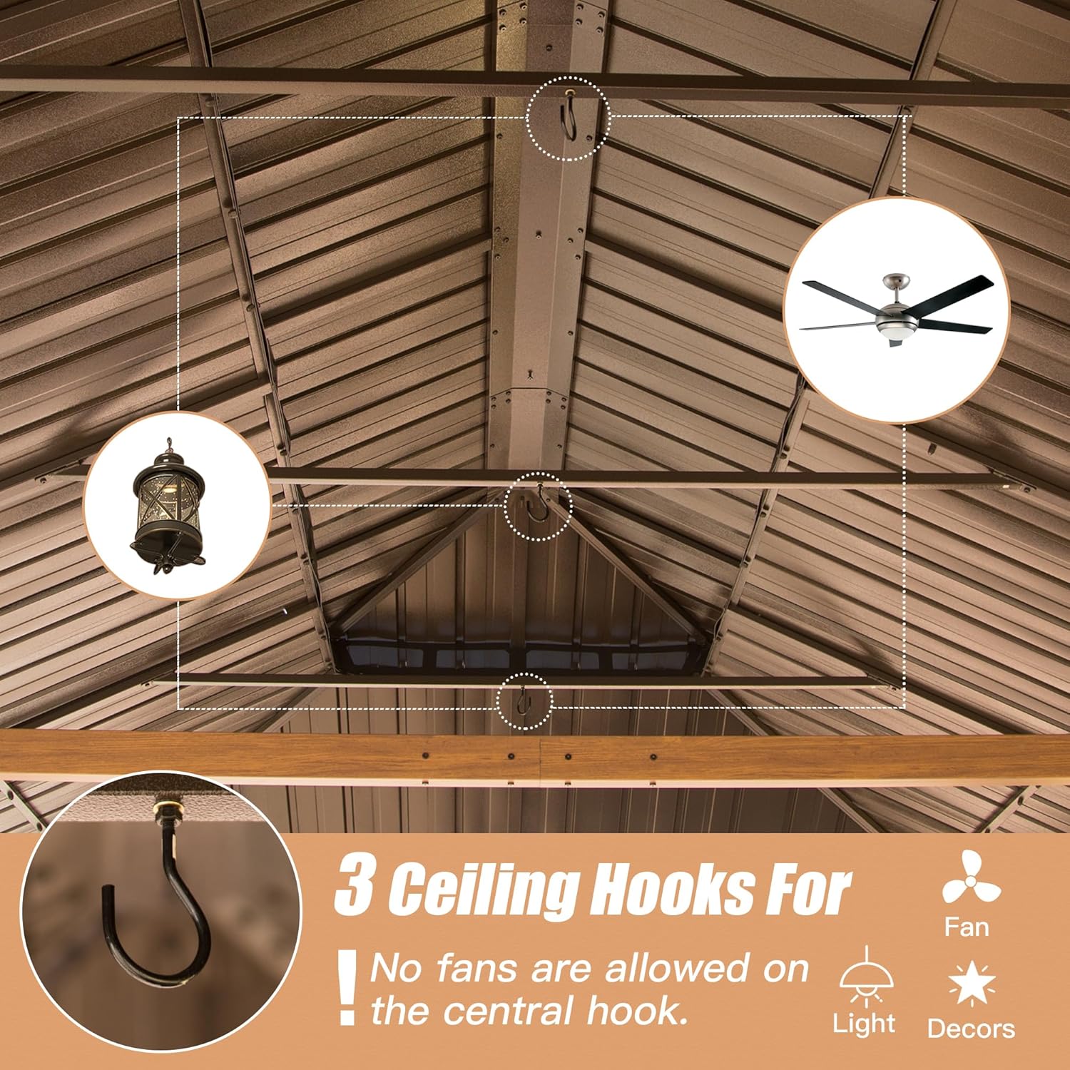 ❤️Stability and Durability- The galvanized steel metal top and sturdy aluminum frame provide the metal gazebo with the ability to withstand heavy snowfall in winter and offer unbeatable stability in windy conditions.