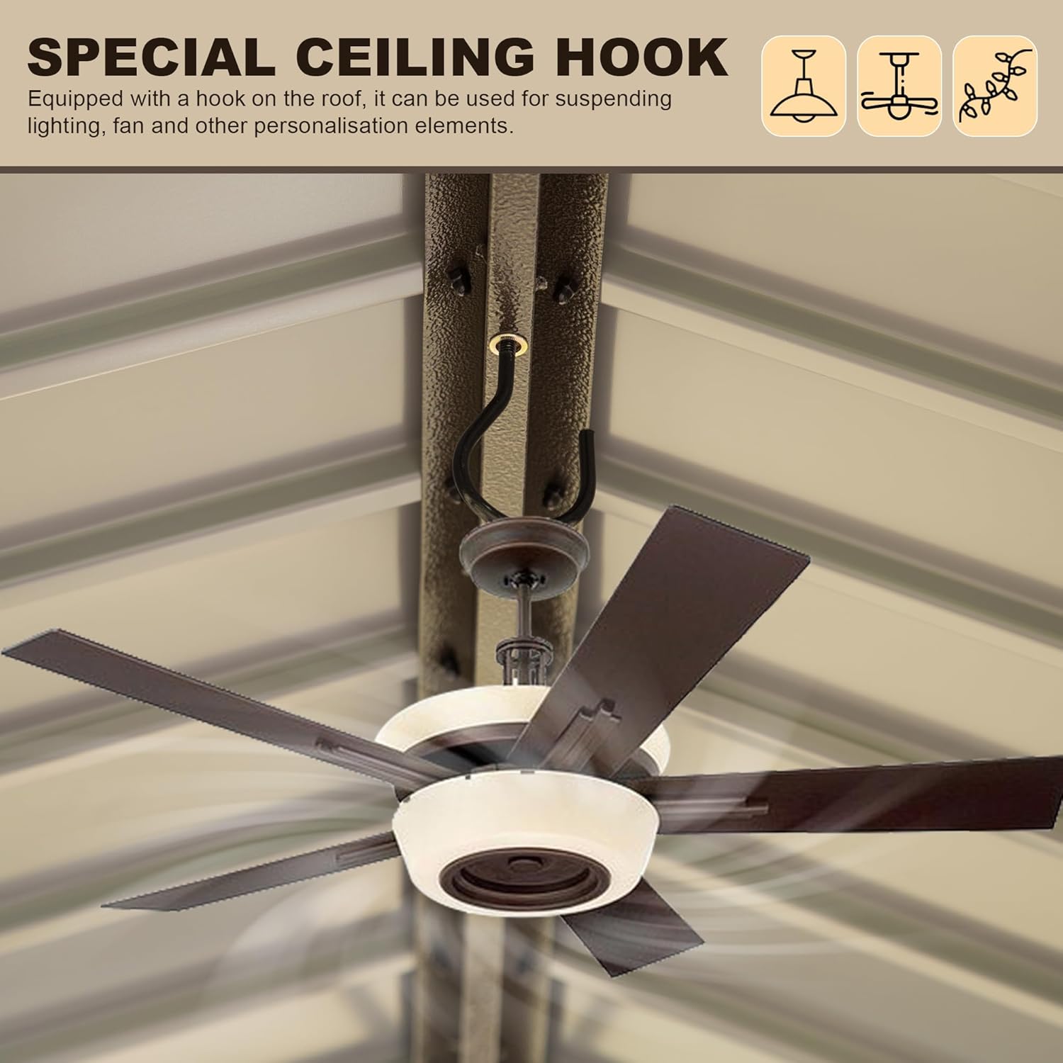 Double-layer Galvanized Steel Roof: The gazebo is made of durable galvanized steel with a powder-coated layer for rust resistance, waterproofing, and UV protection, ensuring long-lasting durability. The double-top design promotes air circulation and adds a stylish look.