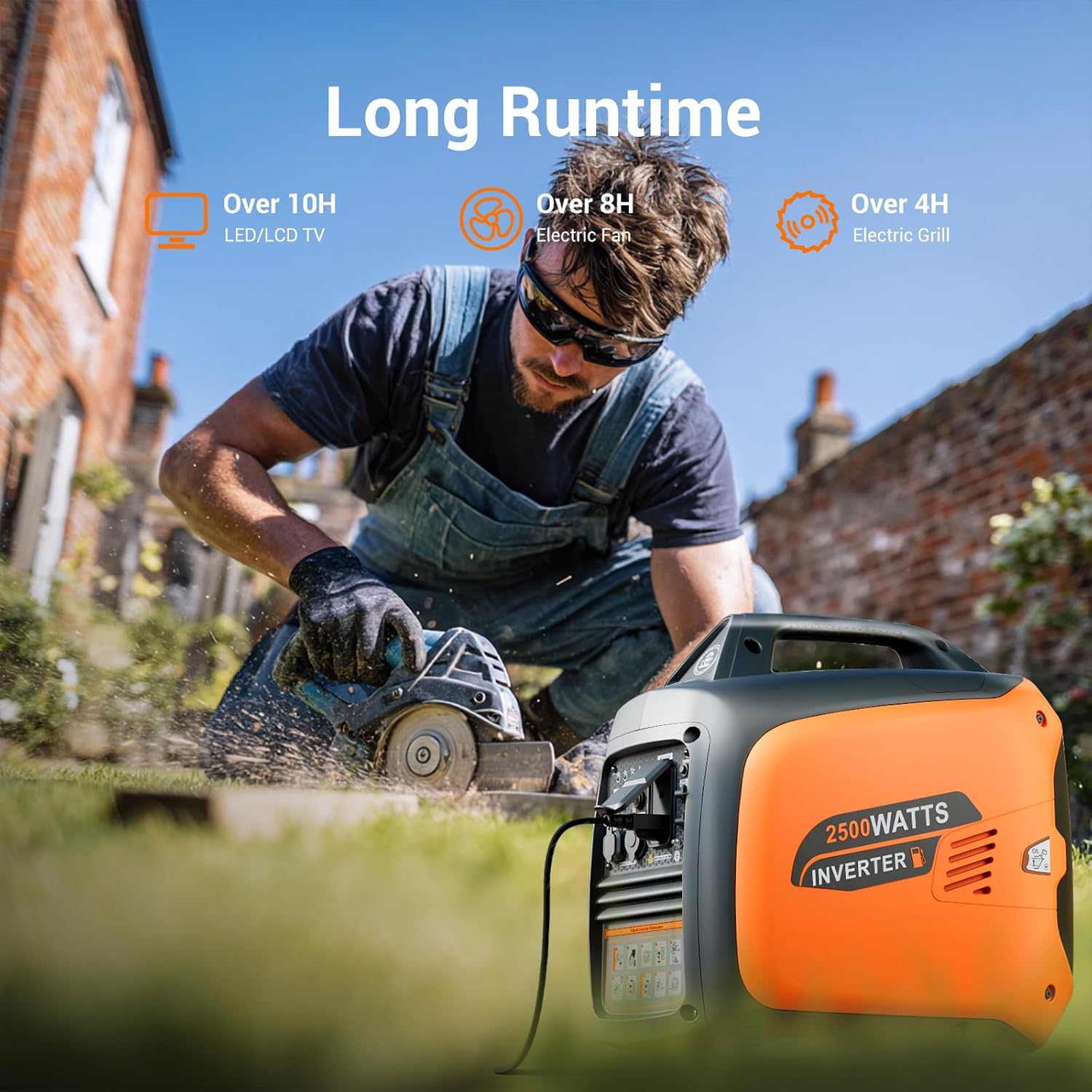 Fuel Efficient & Long Runtime: Up to 10 hours runtime at 25% load, with ECO mode and CO sensor, 1.1 gallon fuel tank with fuel gauge.