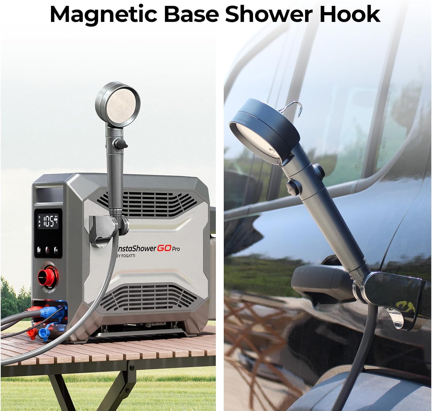 Portable Shower System: FOGATTI InstaShower GO Pro is a compact and portable shower system designed for outdoor use. Heated by propane, it provides hot water in seconds for showering. It is lightweight and easy to store, making it an ideal companion for camping, hiking, and other outdoor adventures