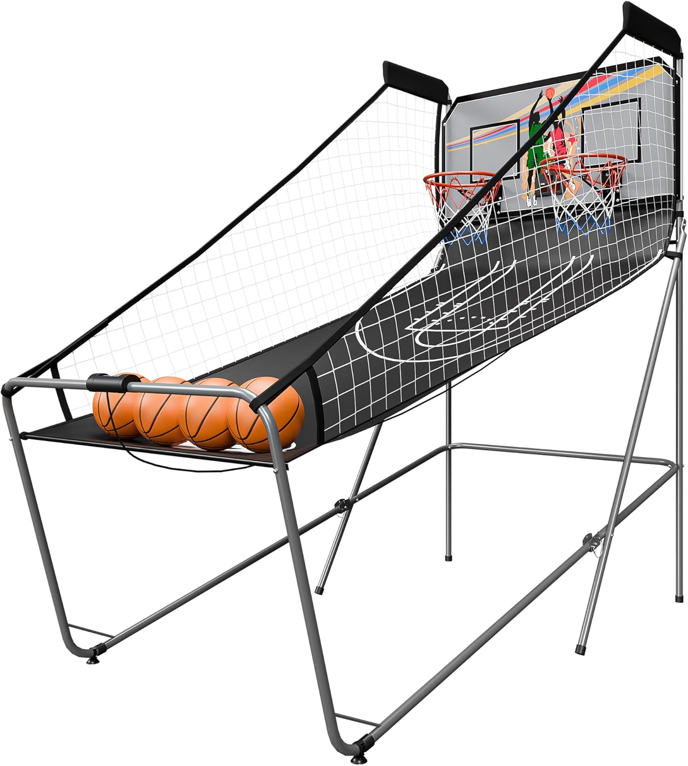 Foldable Indoor Basketball Arcade Game Set Double Shot 2 Player Basketball Hoop Machine w/ 4 Balls Electronic LED Scoreboard Inflation Pump (Black)