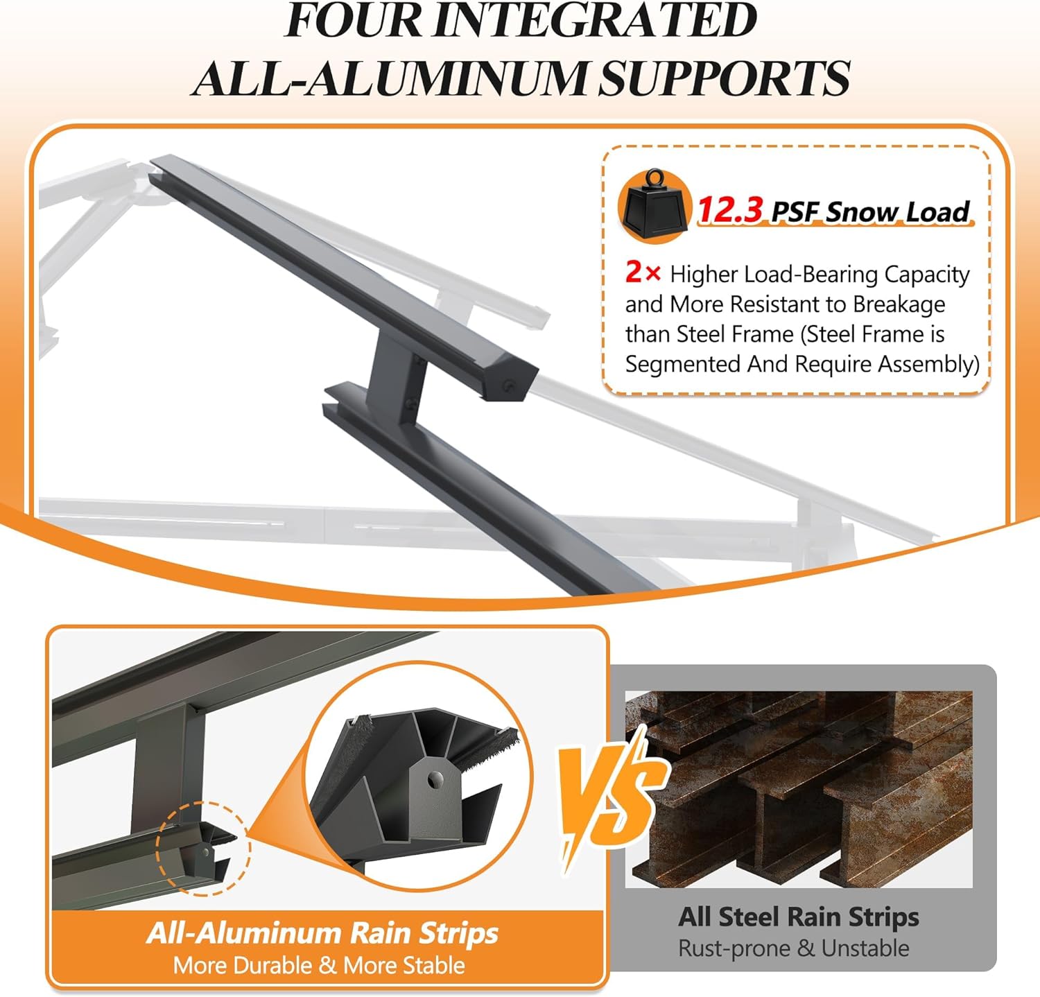 ⛱️EASY ASSEMBLY: Comes with detailed tutorial installation manual, Installation will take roughly 2-4 hours and 2-5 people are recommended. Package contains 3 boxes, The outer box may arrive in different time periods. Safety measures and professional installation are highly recommended