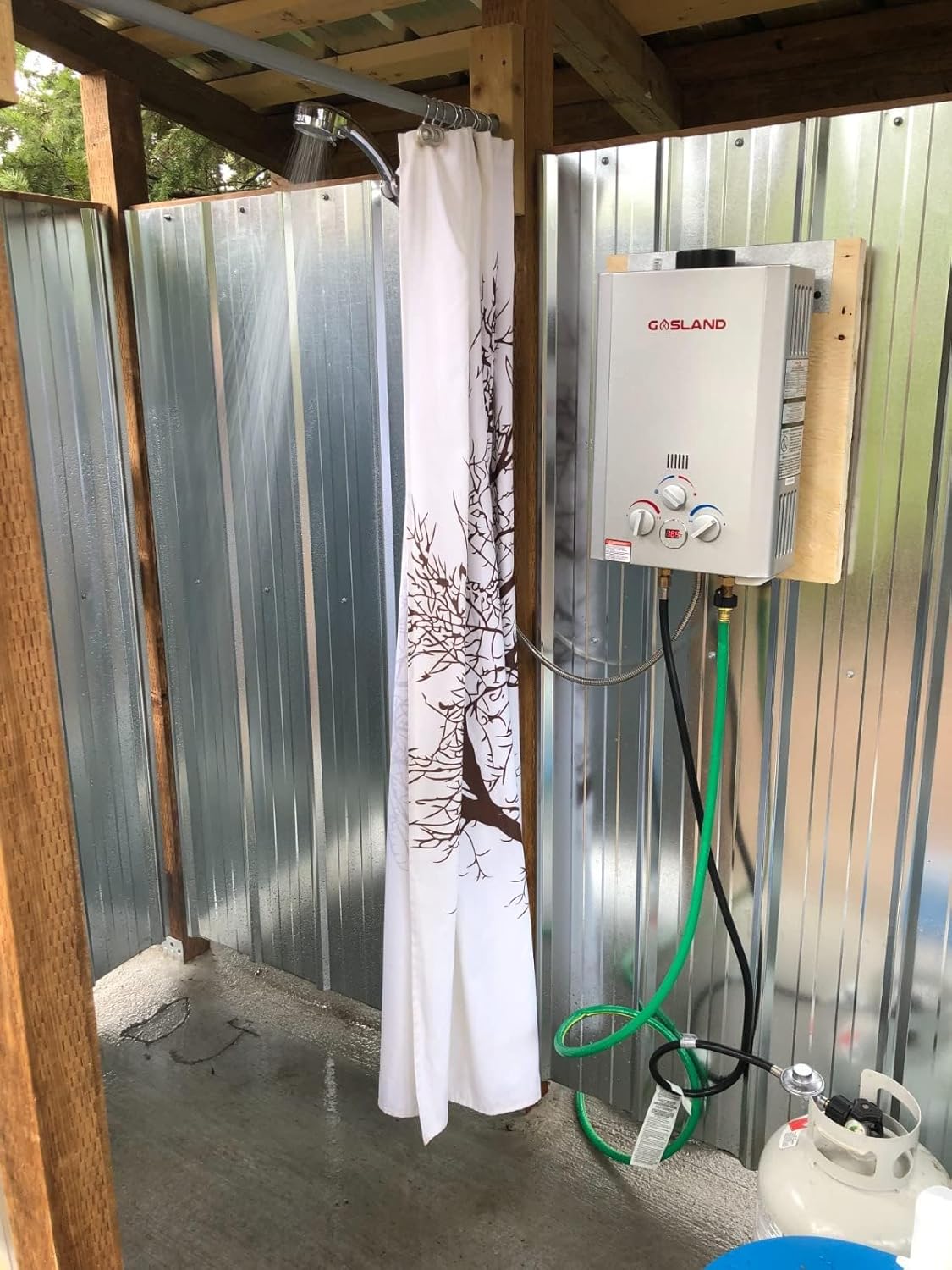 𝗚𝗼𝗼𝗱 𝗳𝗼𝗿 𝗢𝗳𝗳-𝘁𝗵𝗲-𝗚𝗿𝗶𝗱 – Runs on a standard 20 lb. liquid propane tank and is equipped with an electronic ignition powered by two D-cell batteries. Can be used in a variety of scenarios: while you’re camping, RVing, hunting, hanging poolside, washing your pets or horses, cleaning your vehicle, or even in your tiny home, greenhouse, or cabin house.