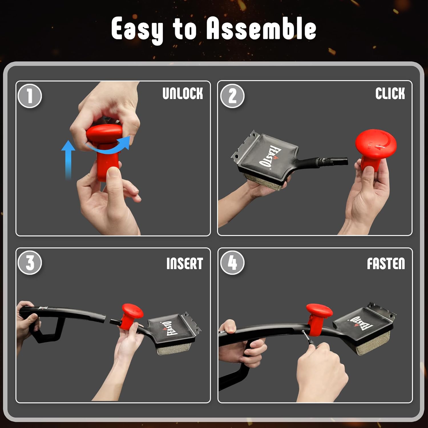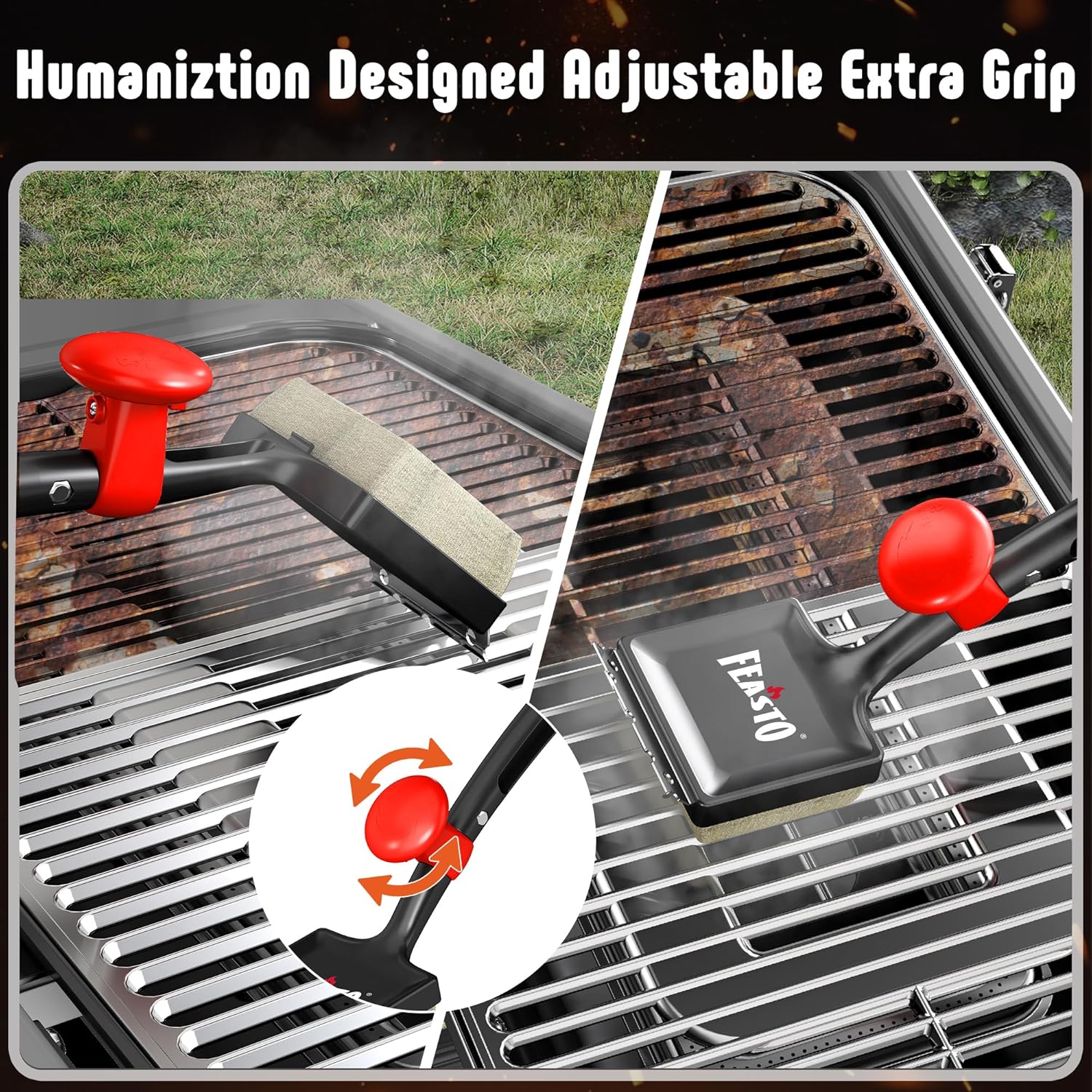 Professional Scraper with Universal Compatibility: The integrated scraper is crafted from premium stainless steel for maximum durability. Its innovative edge features precisely designed round and semi-round cutouts to effectively clean various grill tools—from skewers and grates to flat griddles—ensuring no residue is left behind.