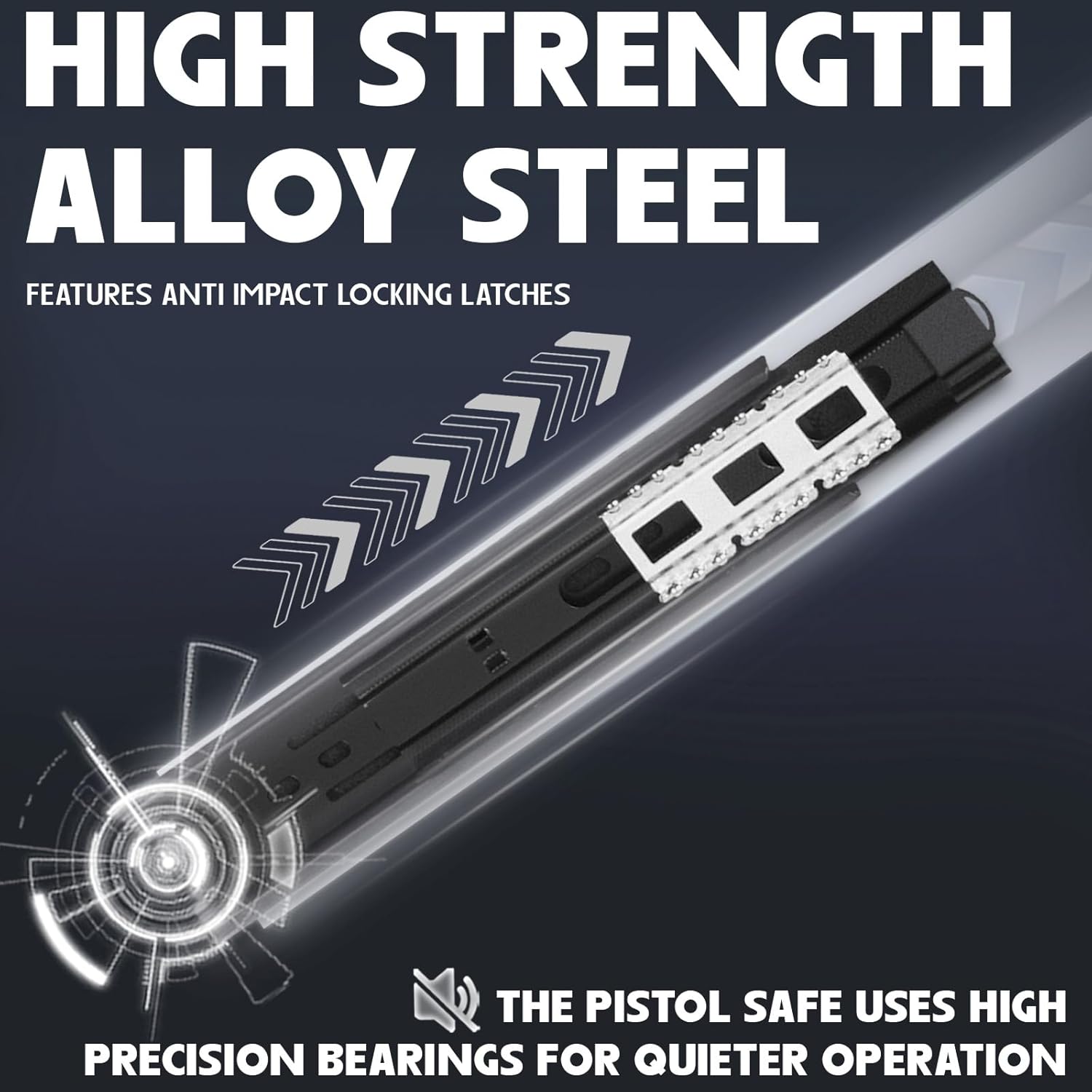 TOUGHER MATERIAL & LARGER CAPACITY: The bedside gun safe is primarily constructed from high-hardness, high-toughness, and high-strength alloy steel plates, weighing up to 12lb. It has undergone multiple shockproof tests and features anti-impact locking latches that securely lock the safe in case of impact, effectively preventing unauthorized access through brute force.