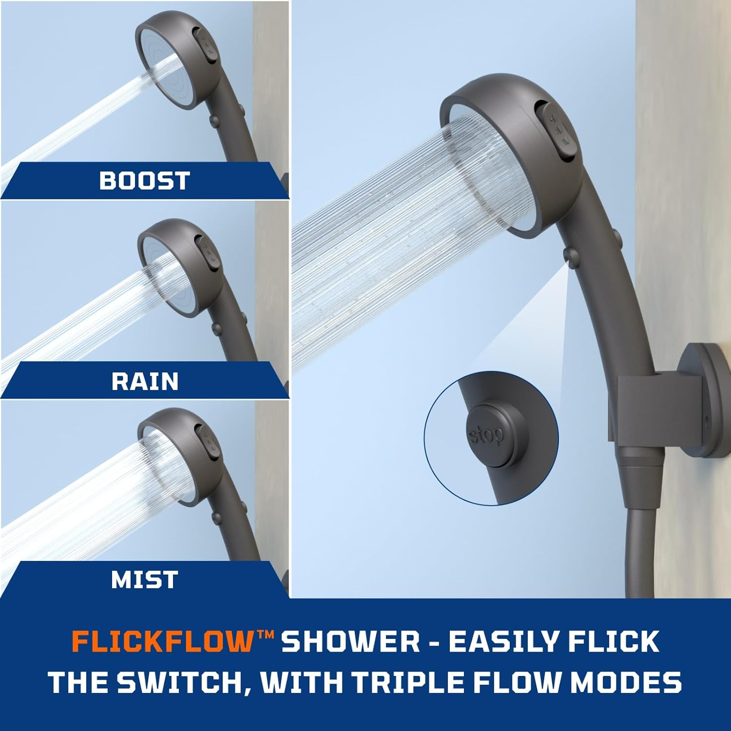 【Versatile Outdoor Water Heater】 Crafted for outdoor adventurers, the camping shower with heater features a 3-mode adjustable and detachable Flickflow showerhead, offering unmatched versatility for your outdoor activities or camping shower. Its truly portable design supports 1lb to 20lb propane canisters, giving you full flexibility in fuel choice while delivering consistent performance across a wide range of outdoor environments.