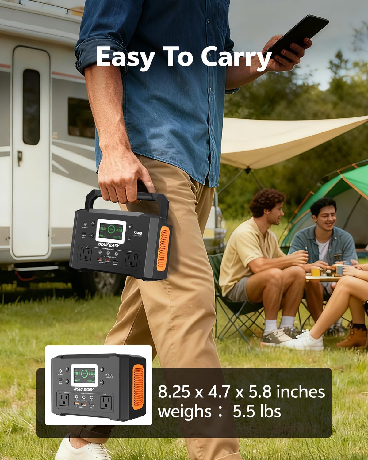 Compact yet powerful: Ideal for portability, this portable power station weighs 5.5 pounds and has a capacity of up to 222Wh, powering many small devices in household electricity, while the folding handle design is also suitable for camping or anywhere you need power on the go