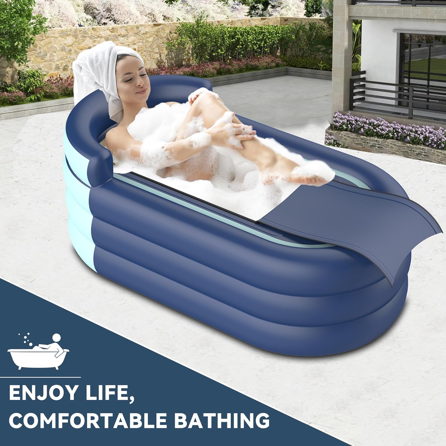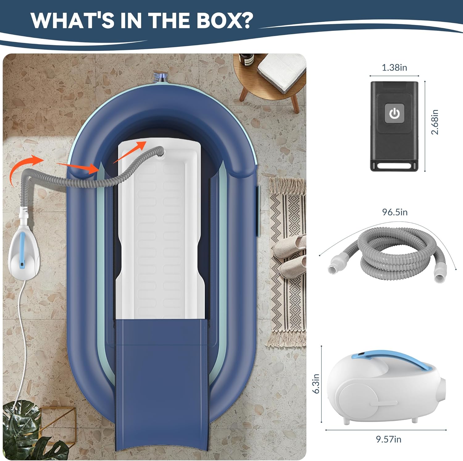 Self-Inflates in 90s with Pump! Plug 110V outlet, adjust 2 bubble modes. Portable bathtub folds to backpack size for apartments/RVs. No tools needed!