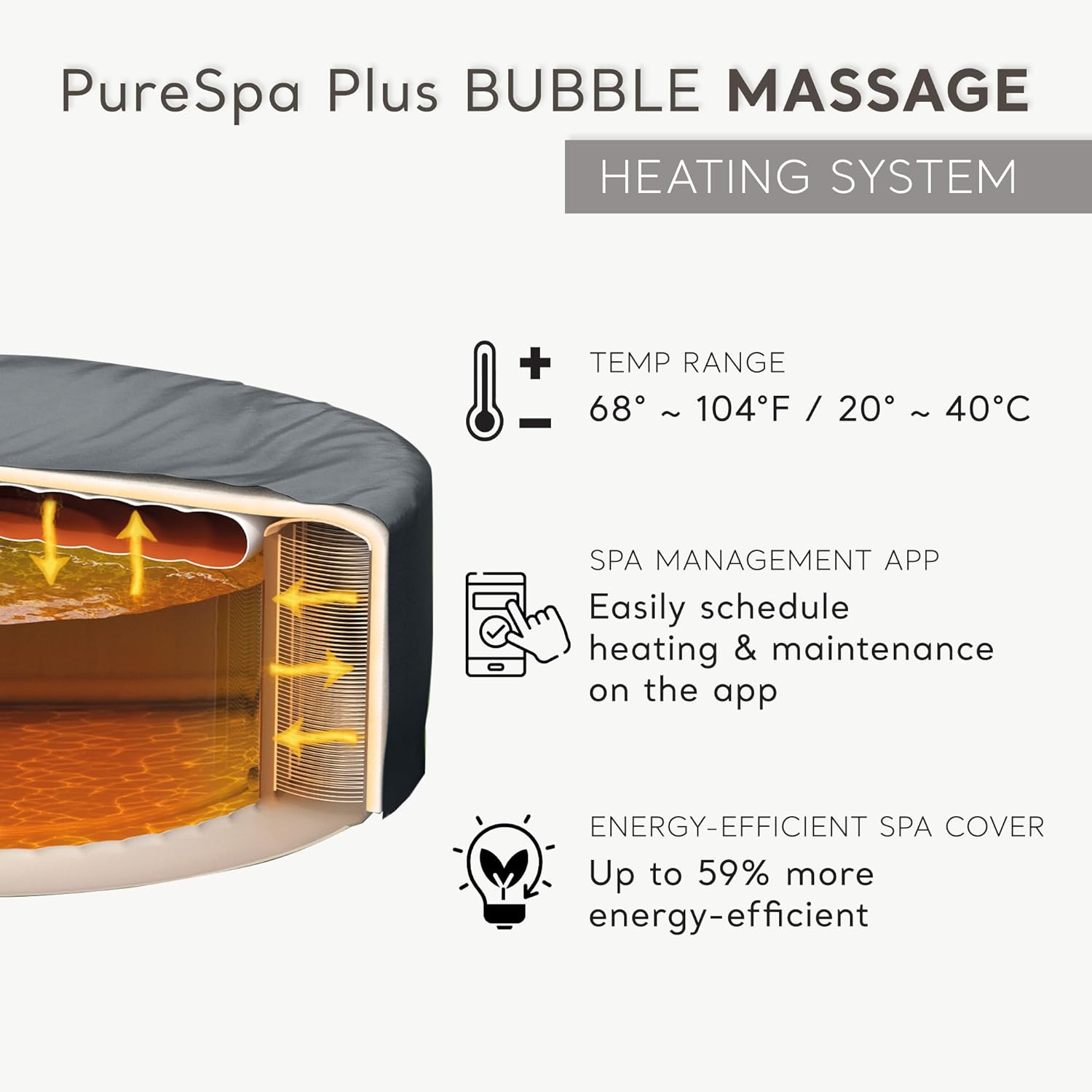 The Intex model 28429EP Portable 4-person inflatable round hot tub spa with 140 shooting high-powdered jets and with 2-pack of medium-sized benches