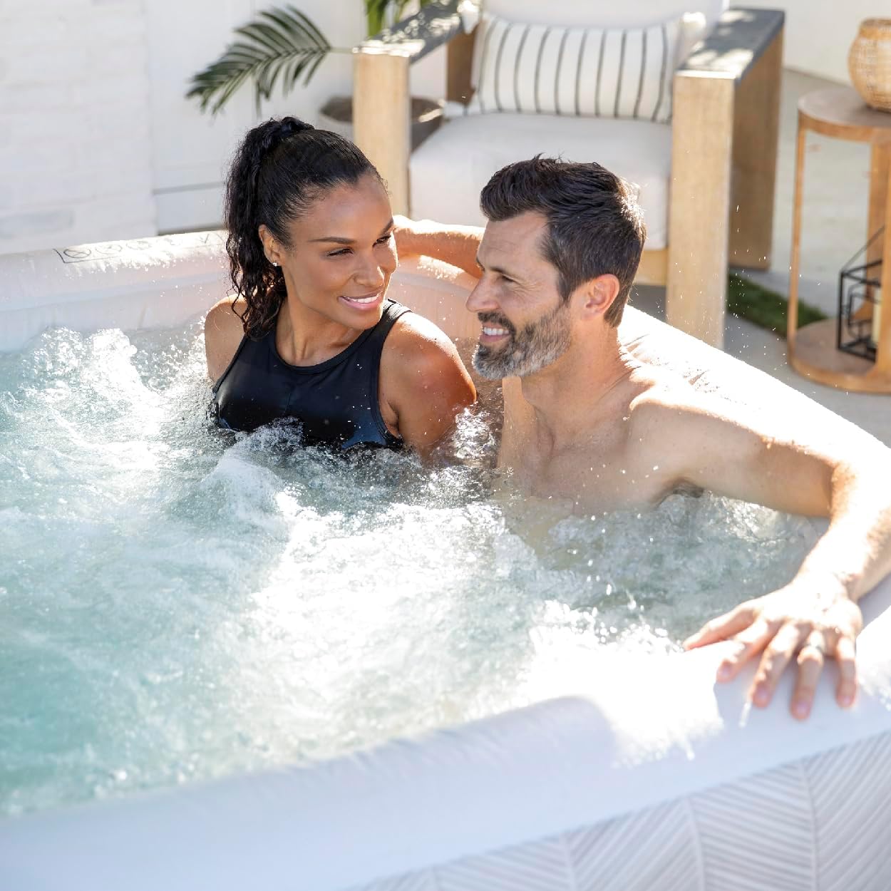 INTEX 28445EP PureSpa Chevron Deluxe Outdoor Inflatable Portable Hot Tub, Includes Energy Efficient Spa Cover, Spa Control App, FastFill Inflation System, 4 Person Capacity, 69″ x 69″ x 28″