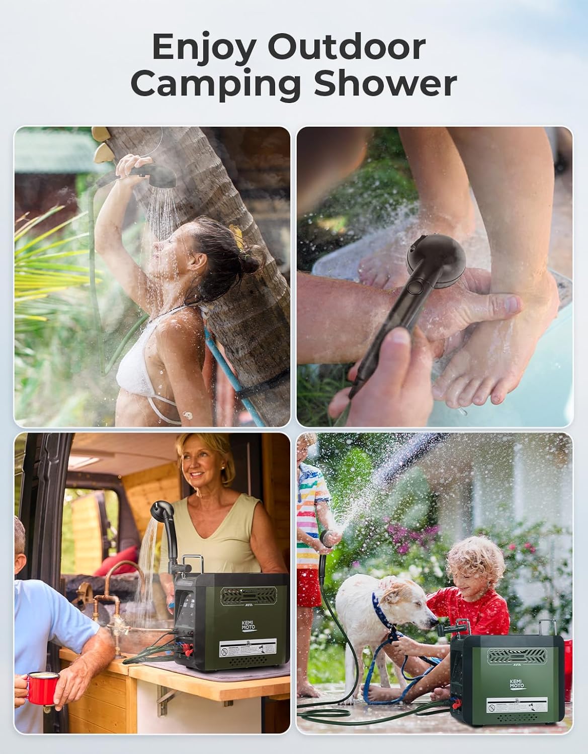 Multiple Safety Protections: This safe and portable propane water heater features an IPX4 waterproof rating to resist against rain. The Hot Water Heater have burn protection, flameout protection, and dry pump protection and so on, ensuring stable operation while camping