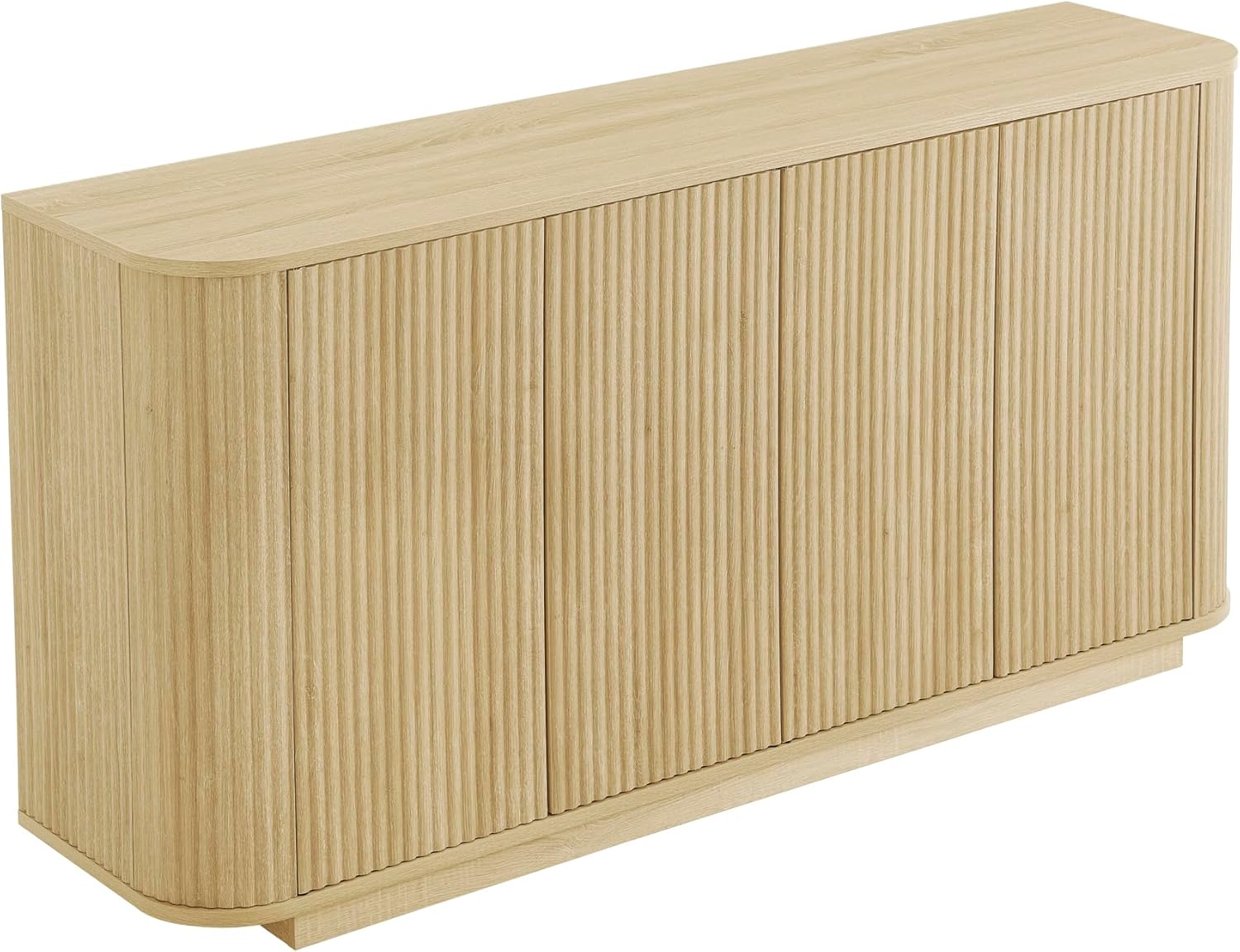 LKTART 64″ Buffet Cabinet with Storage, Modern Fluted Accent Sideboard Media Console Credenza with Adjustable Shelves Pressed Spring for Kitchen Living Room,31.5″ H (Natural Oak)
