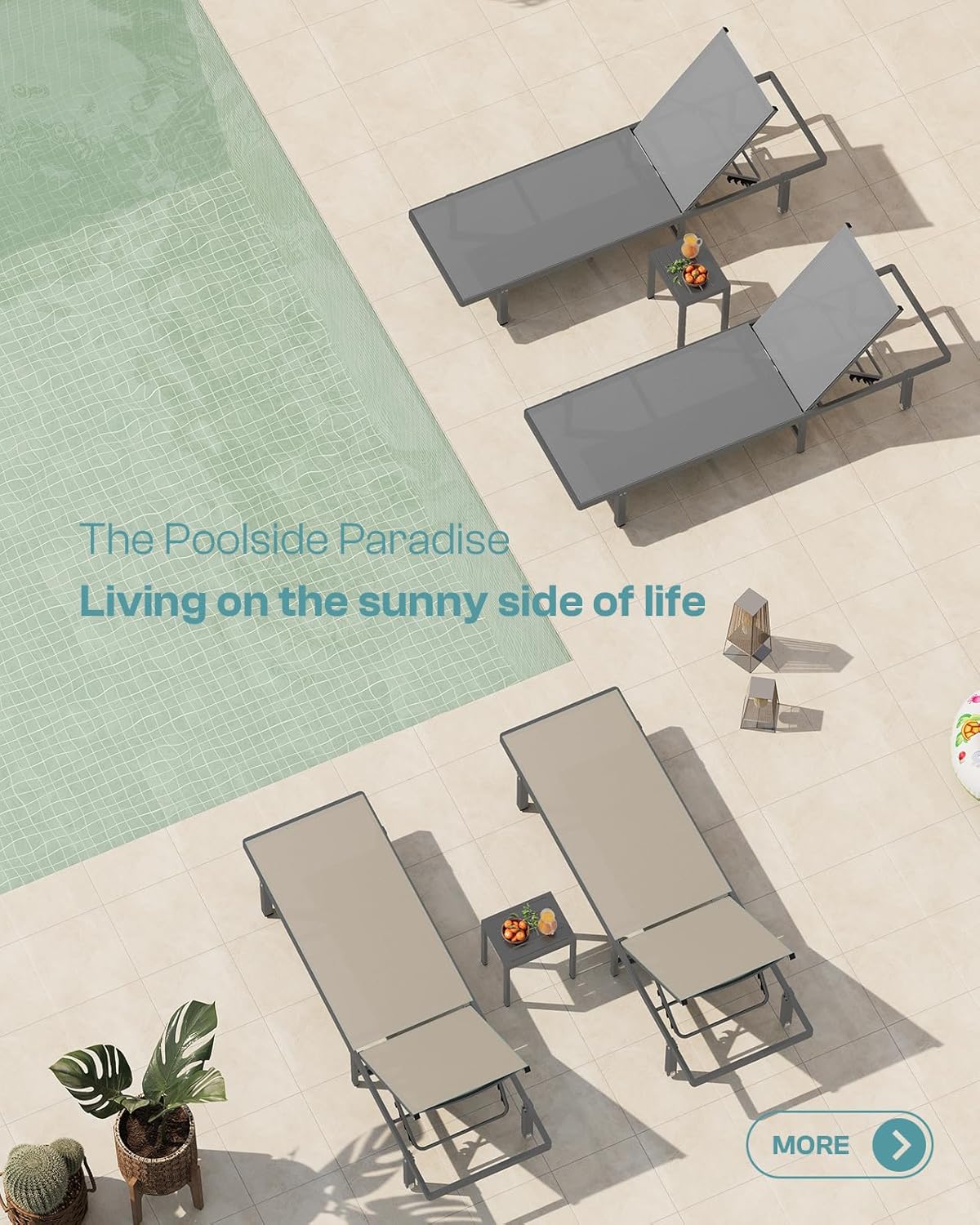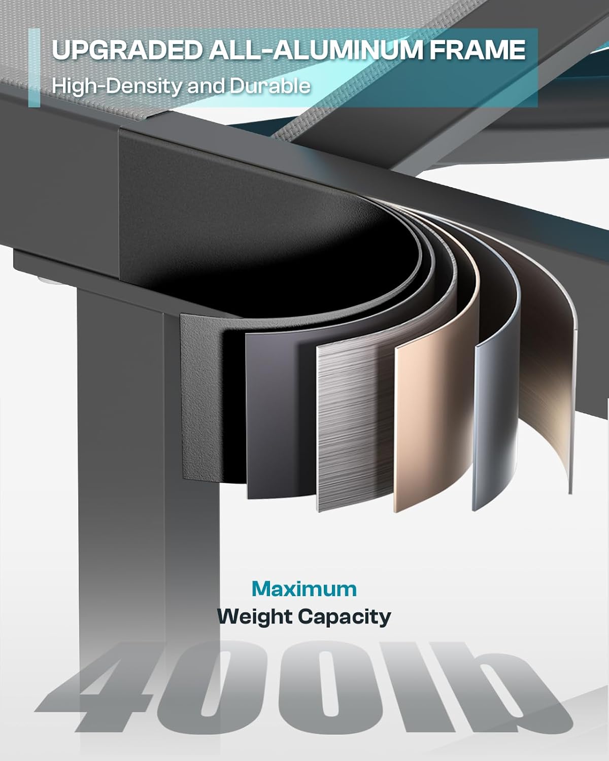 【Rust/Fade-Resistant Aluminum Frame】Built with high-quality powder-coated aluminum (far sturdier than cheap painted iron) Oasbira pool loung chair resists rust/fading against outdoor elements. It supports up to 400 lbs, accommodating most users for long-lasting, stable relaxation