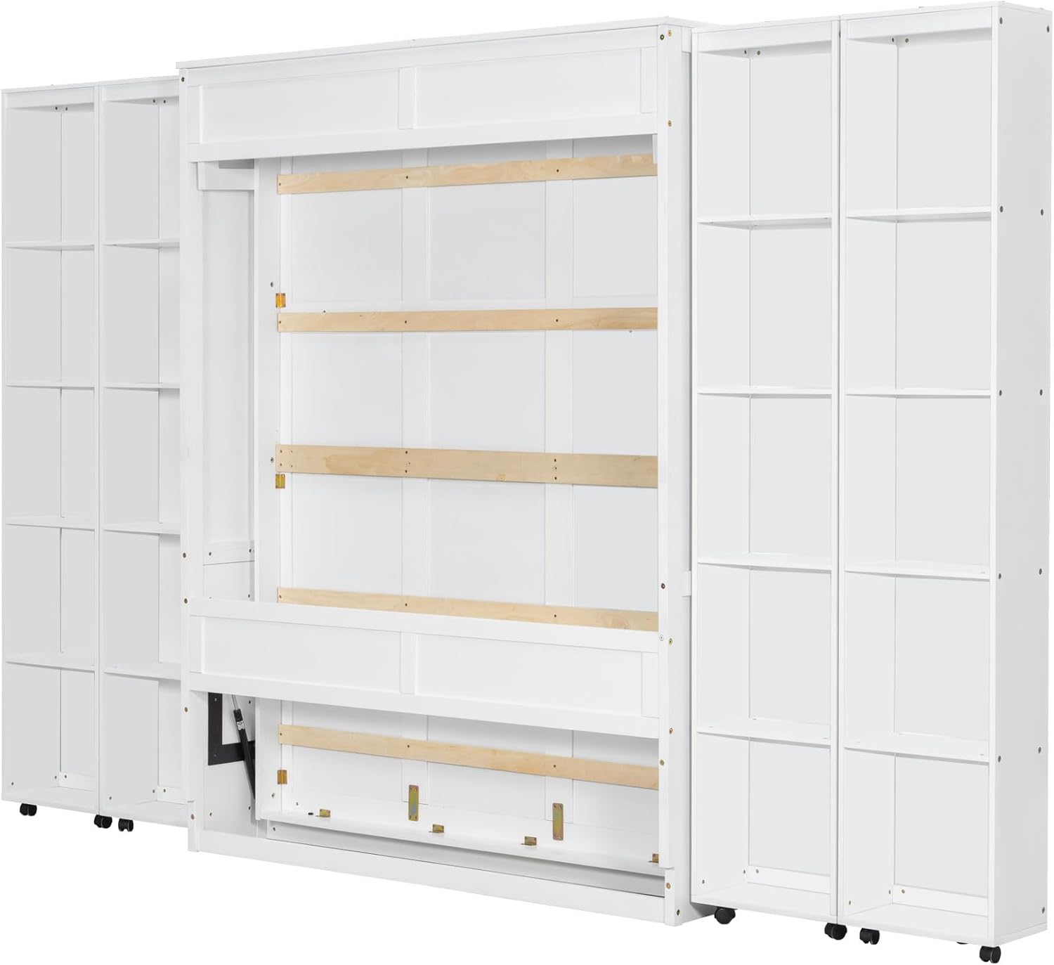 Merax Queen Size Murphy Bed, Wood Queen Wall Bed with Storage Doors and Shelves, White