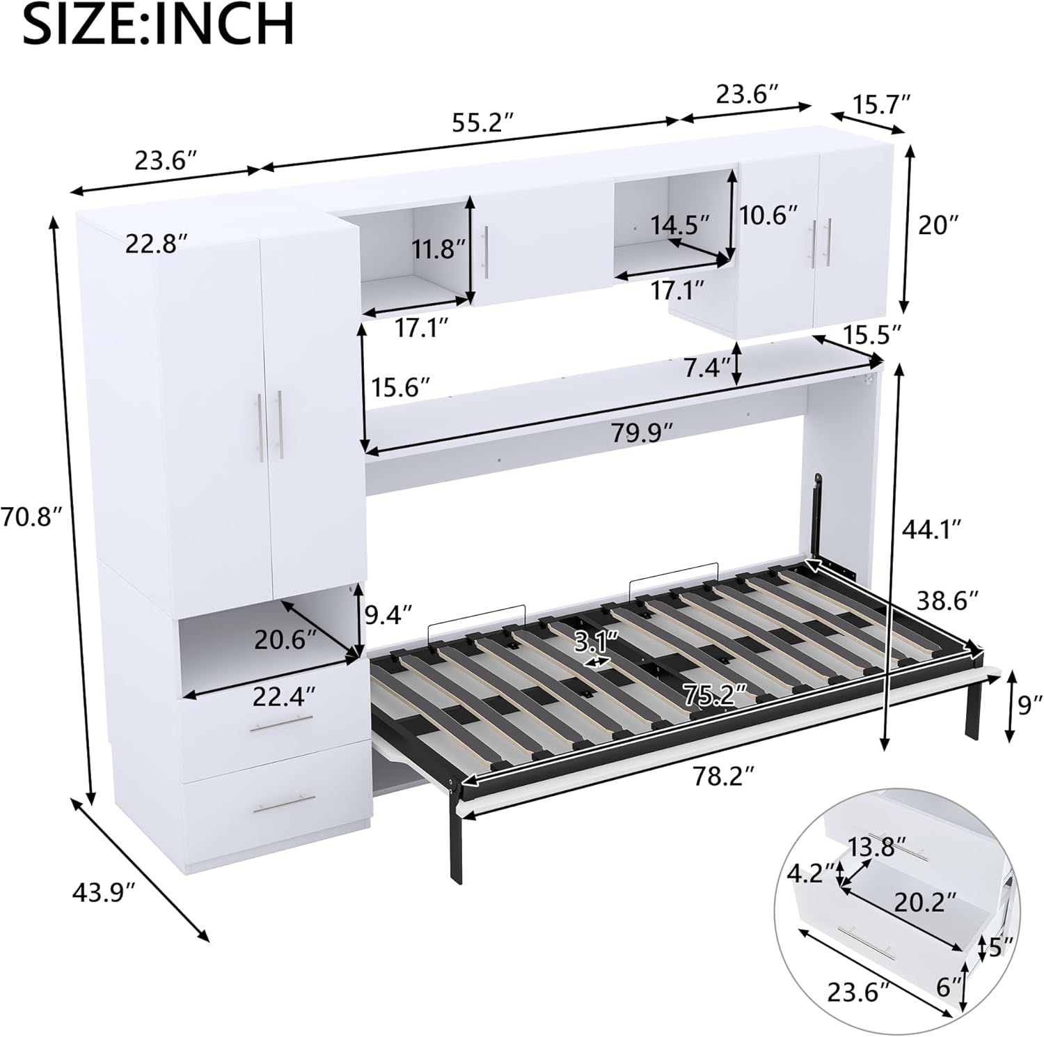 Merax Twin Murphy Bed Cabinet with Storage Wardrobe, Open Shelves & Drawers Murphy BedMurphy Bed