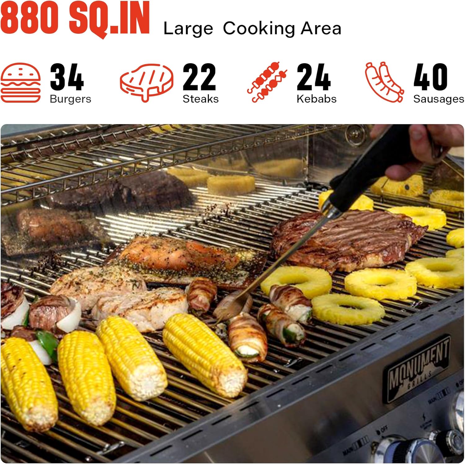 Large Cooking Area: Boasting 840 sq.in. of total cooking area, including 640 sq.in. primary grilling area and 240 sq.in. warming rack area, this grill provides ample space for entertaining large gatherings or family barbecues.