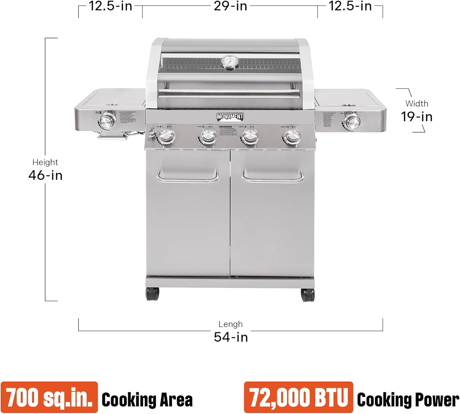 Monument Grills Larger 4-Burner Propane Gas Grills Stainless Steel Cabinet Style with Infrared Side Sear & Side Burners with Stainless Steel Cooking Grids(2 Items)