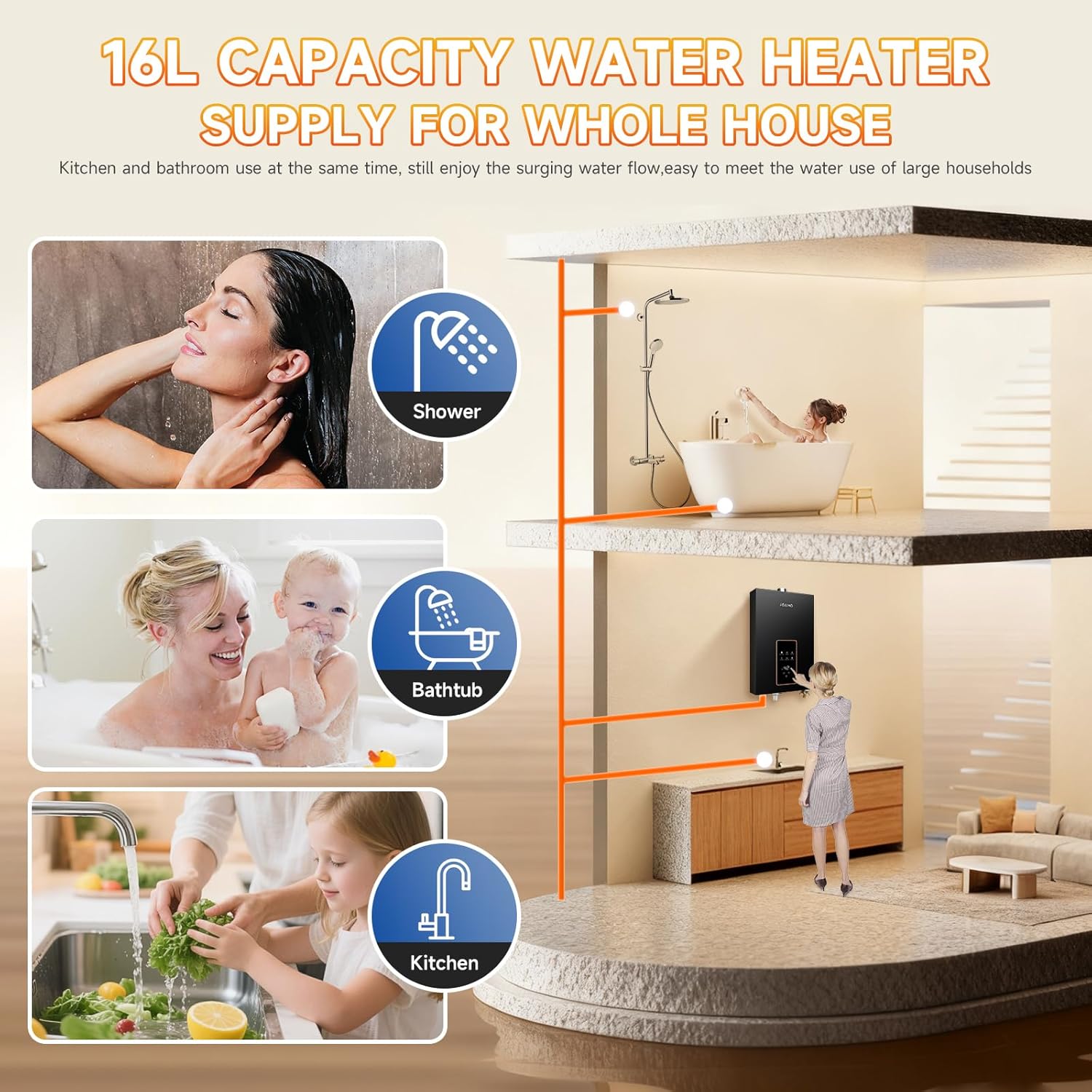 【Widely Application】- Compared to tank water heaters, it saves over 50% of available space, and is suitable for both bathroom and kitchen hot water demand. It is great for indoor installation in homes, small cabins and remote apartments, and there is no need to install an expansion tank. Note: In cold weather, if the water heater is not used for a long time, it is necessary to open the pressure relief valve to drain the residual water inside the water heater.