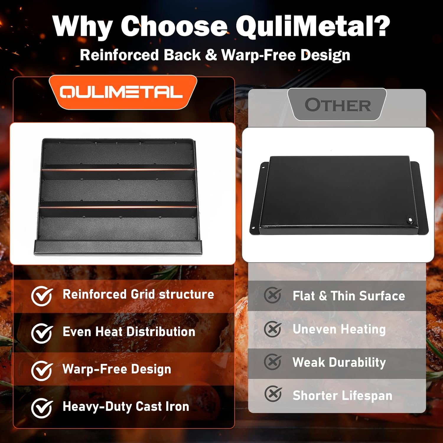 【Extra-Large Cooking Surface】With 221 sq.in. of cooking area, nearly double standard griddles, you can grill multiple dishes at once. Works great as a cast iron griddle for gas grill alternative, letting you sear meats, sauté veggies, or cook family breakfasts all on one surface