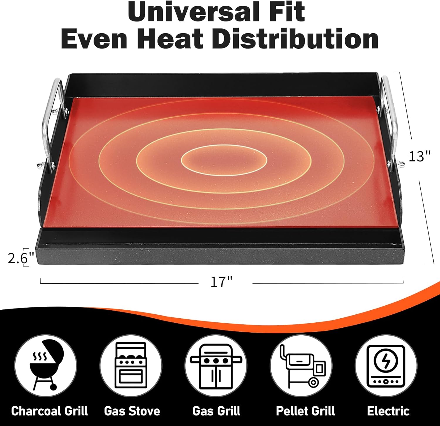Nonstick Nanoceramic Griddle Plate, Pre-Seasoned Heavy-Duty Flat Top Insert, Universal Outdoor Cooking Griddle for Gas Grill/Charcoal/Gas Stove, Camping, Tailgating, Parties & Backyard BBQ, 17″x13″