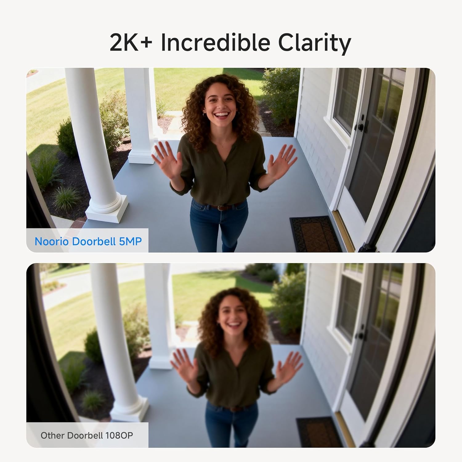 Noorio Wireless Doorbell Camera with Rechargeable Battery, 2K+ Resolution, 2-Way Audio, Color Night Vision, AI Motion Detection, Smart Video Doorbell Works with Alexa, D110