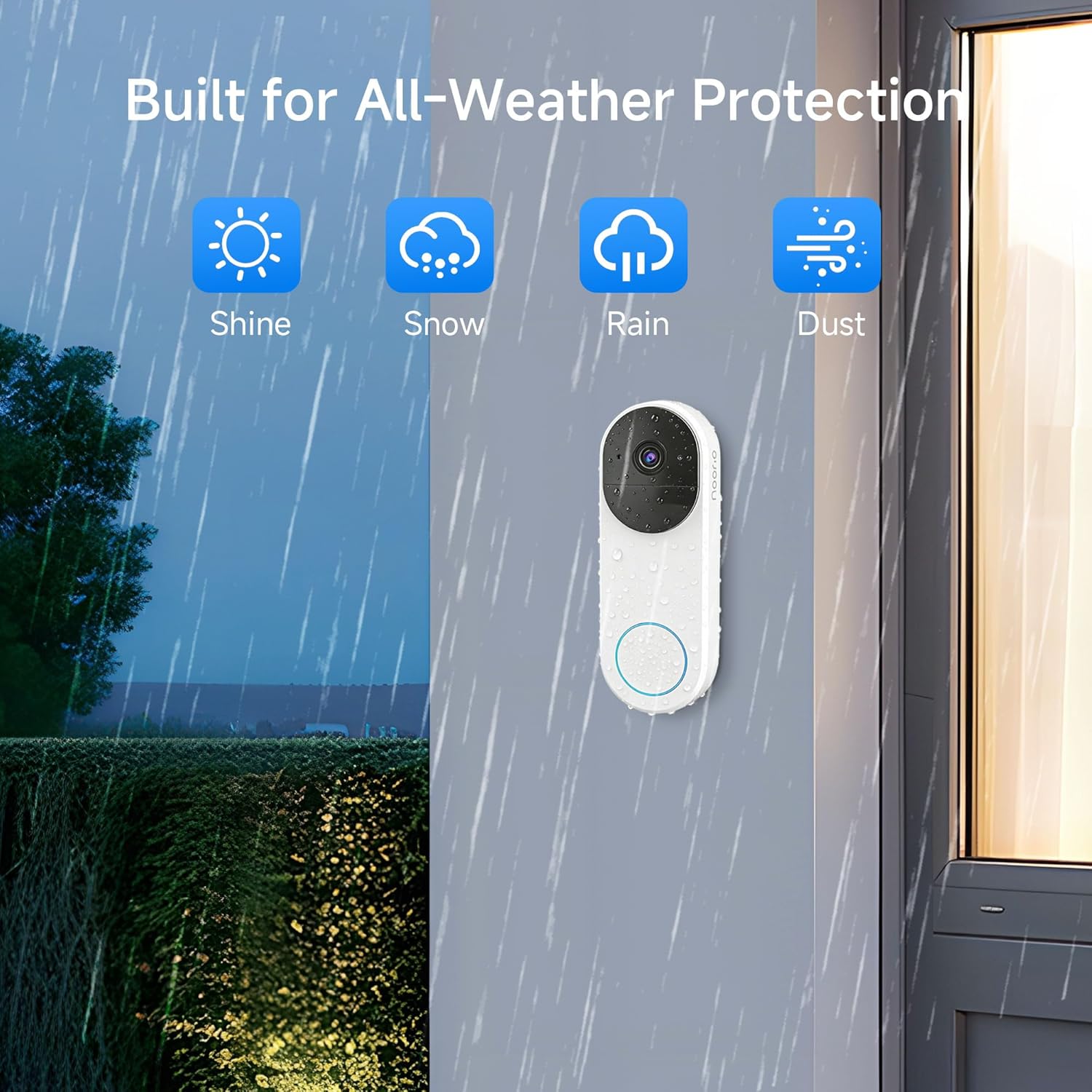 【Crystal 5MP UHD & Superior Night Vision】Captures clear 5MP UHD video with a 140° wide-angle lens; enhanced night vision up to 33 feet ensures detailed monitoring. This door camera wireless for apartment is essential for outdoor security, allowing you to monitor your home day and night from any location.